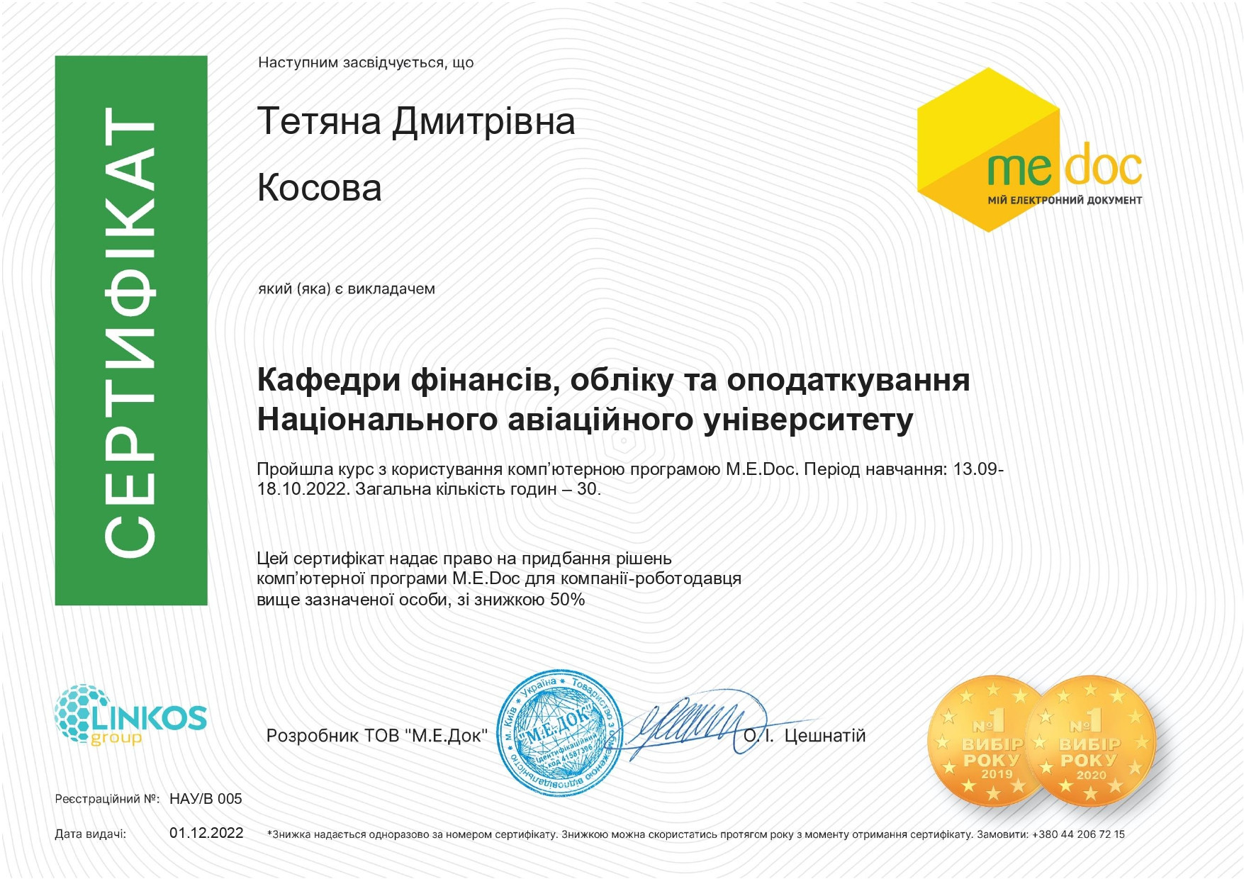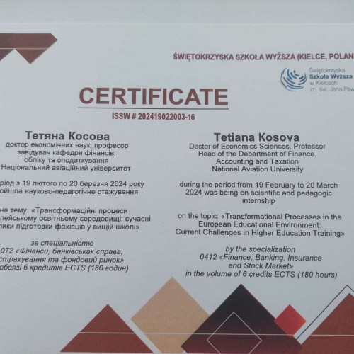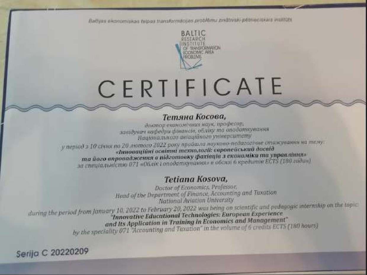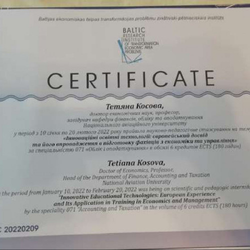 доктор економічних наук, професор кафедри економіки і підприємництва