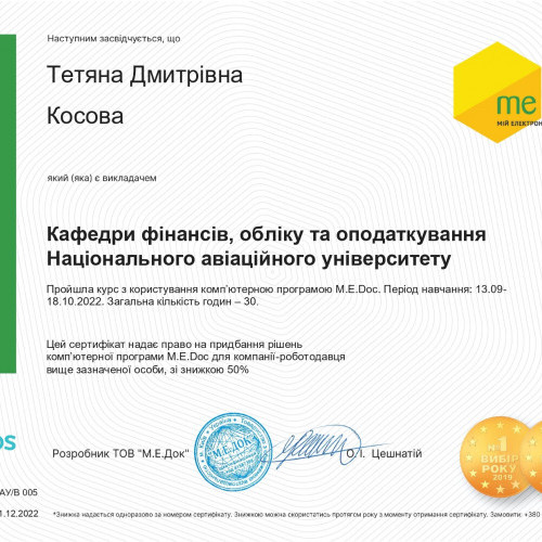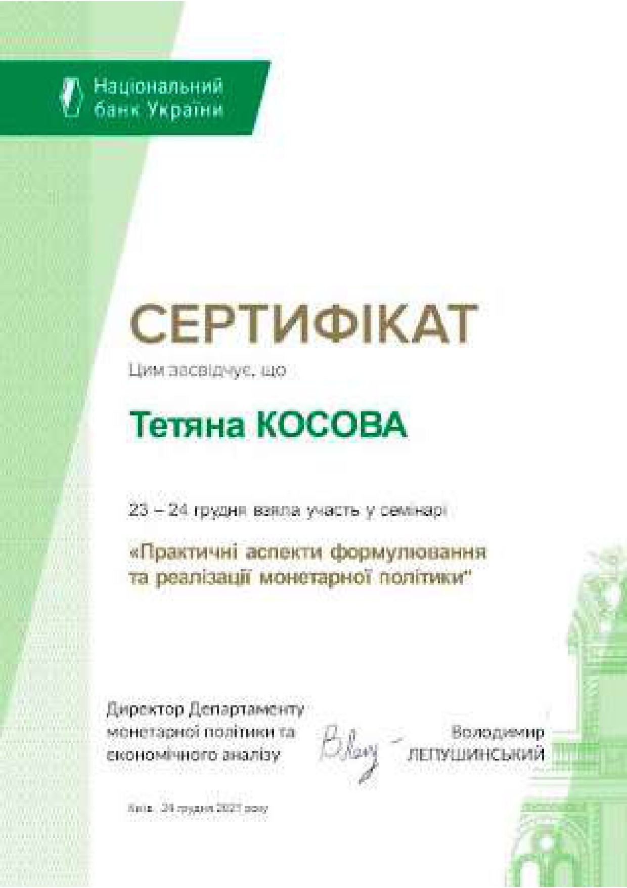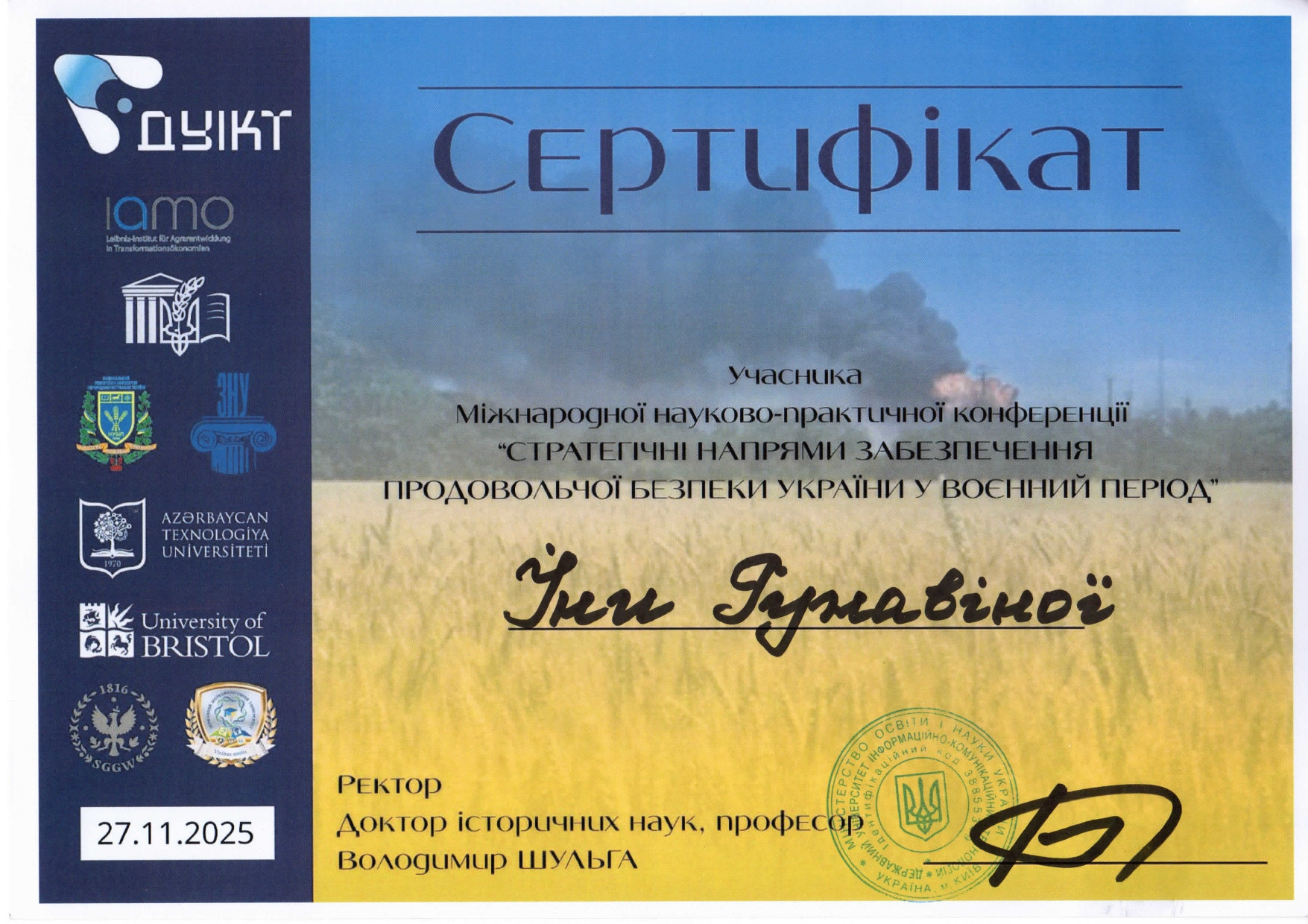 кандидат економічних наук, доцент кафедри економіки і підприємництва
