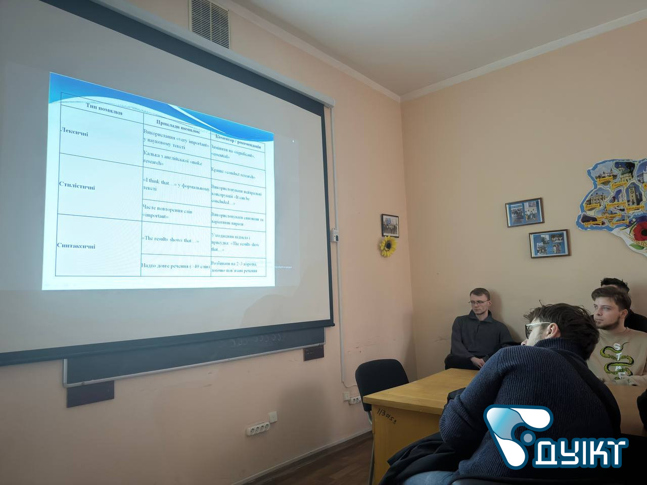 21 жовтня 2025 року для здобувачів третього (освітньо-наукового) рівня вищої освіти спеціальності "Інженерія програмного забезпечення" Державного університету інформаційно-комунікаційних технологій за сприяння кафедри інженерії програмного забезпечення відбулася відкрита лекція на тему «Академічна доброчесність у наукових дослідженнях», яку було проведено кандидатом філологічних наук, доцентом, завідувачем кафедри української мови Світланою Стежко.