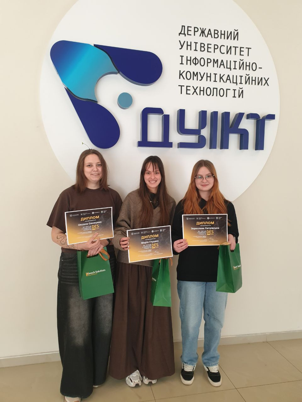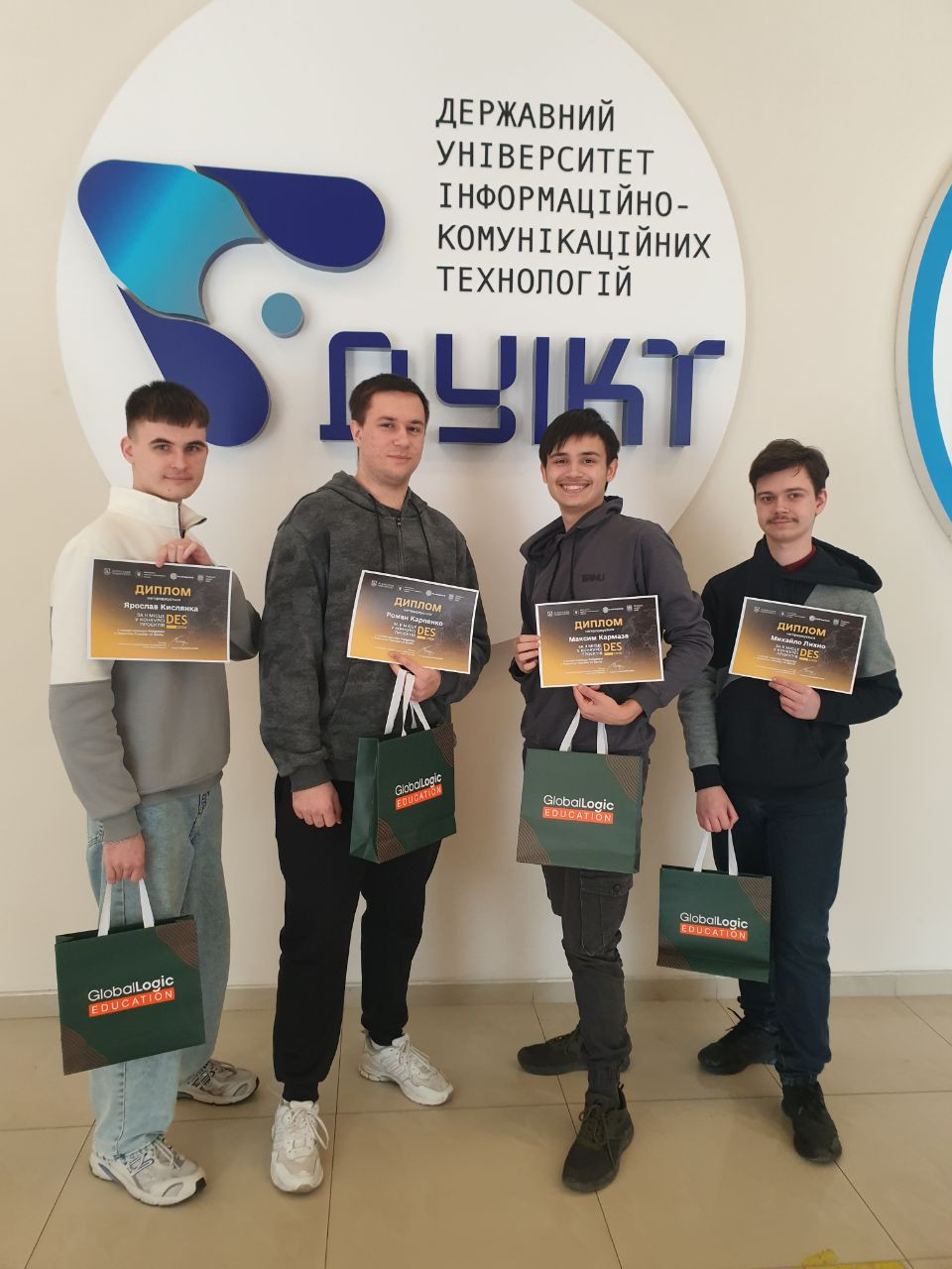 У вівторок, 17 березня ректор Державного університету інформаційно-комунікаційних технологій Володимир Шульга вручив дипломи та цінні подарунки за перші та другі призові місця студентам кафедри Інженерії програмного забезпечення, що здобули перемогу і гідно представили свої проєкти у рамках навчання в Зимовій школі Data Engineering and Security (DES 2026).