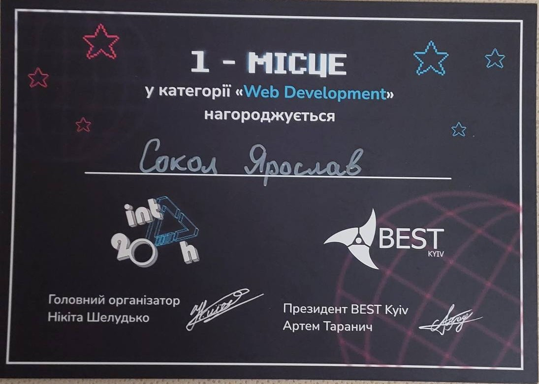 Упродовж двох днів найсильніші молоді розробники з усієї країни змагалися у форматі безперервного інтелектуального марафону. Наші студенти обрали один із найконкурентніших напрямів — Web-розробку, де продемонстрували не лише досконале володіння сучасними стеками технологій, а й здатність створювати складні архітектурні рішення у надзвичайно стислі терміни.