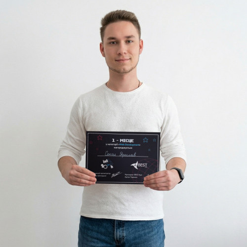 Головна порада студентам: не боятися. Якщо вам дають можливість, її обовʼязково потрібно використовувати. Також дуже важливо не соромитися запитувати та пробувати щось нове, тому що максимум, що ви можете отримати у відповідь - це слово «ні». Але на цьому «ні» життя не закінчується, навпаки - це має стати для вас додатковою мотивацією працювати далі, щоб у майбутньому ви обов'язково отримали своє заслужене «так». На своєму прикладі можу сказати, що минулого року ми навіть на основний етап не потрапили, але цьогоріч, я думаю, ми сповна відігралися. Працюйте на результат, але не забувайте насолоджуватися процесом. Задоволення від того, що ви робите - це також великий крок до успіху та чудова можливість уникнути вигорання» - відгук про участь і перемогу від Сокола Ярослава.