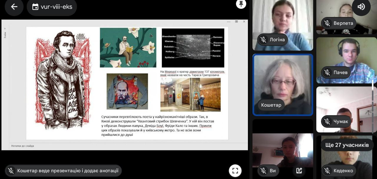 19 березня 2026 року у Державному університеті інформаційно-комунікаційних технологій відбувся вебінар, присвячений інтерпретації образу Т.Г. Шевченка у сучасному мистецтві. У ньому взяли участь студенти різних спеціальностей, а саме групи: БСД-11, БСД-12, СЗД-11, СКД-11, ТСКД-11,УБД-11, УКД-11.