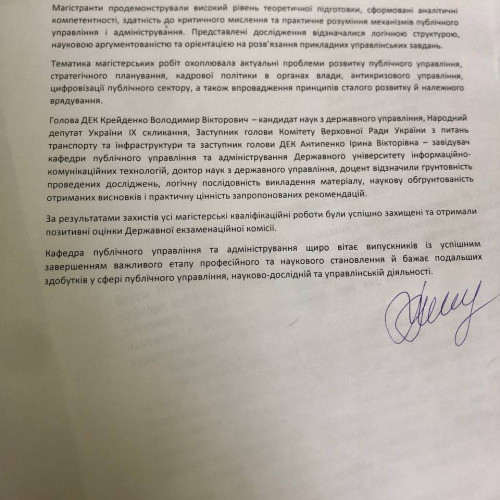 Кафедра публічного управління та адміністрування щиро вітає випускників із успішним завершенням важливого етапу професійного та наукового становлення й бажає подальших здобутків у сфері публічного управління, науково-дослідній та управлінській діяльності.