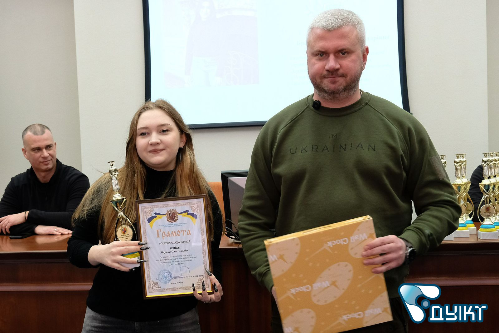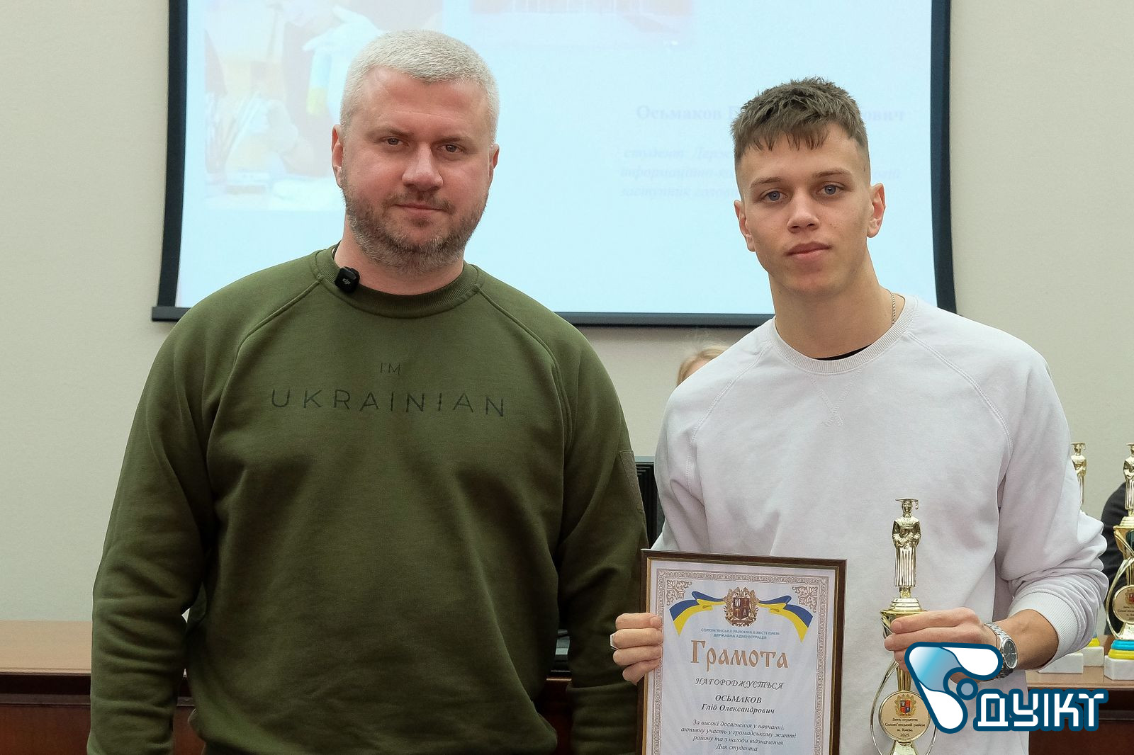 Студенти Державного університету інформаційно-комунікаційних технологій — Осьмаков Гліб, студент Навчально-наукового інституту інформаційних технологій, та Бойко Марина, студентка Навчально-наукового інституту кібербезпеки та захисту інформації, відзначені грамотами голови Солом’янської районної в місті Києві державної адміністрації, за високі результати в навчанні та науці, активну громадську позицію та участь у волонтерських ініціативах.
