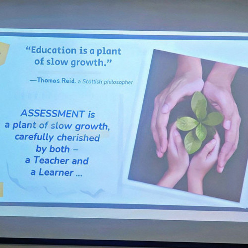 Надихаюча сесія нагадала освітянам , що оцінювання під час навчання може виходити за межі цифр, цінність полягає в рефлексії, креативності та емпатії під час оцінювання навчальних здобутків.