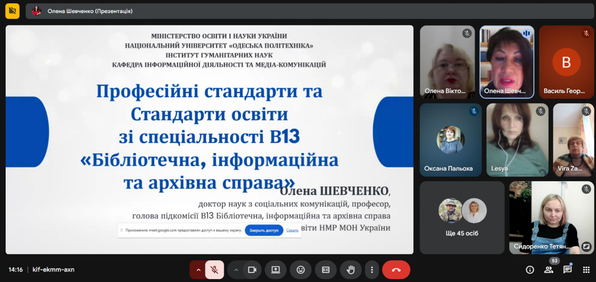 Захід був присвячений виробленню нових напрямів і візій розвитку спеціальності В 13 «Бібліотечна, інформаційна та архівна справа», а також обговоренню актуальних питань підготовки професійних стандартів у межах спеціальності.