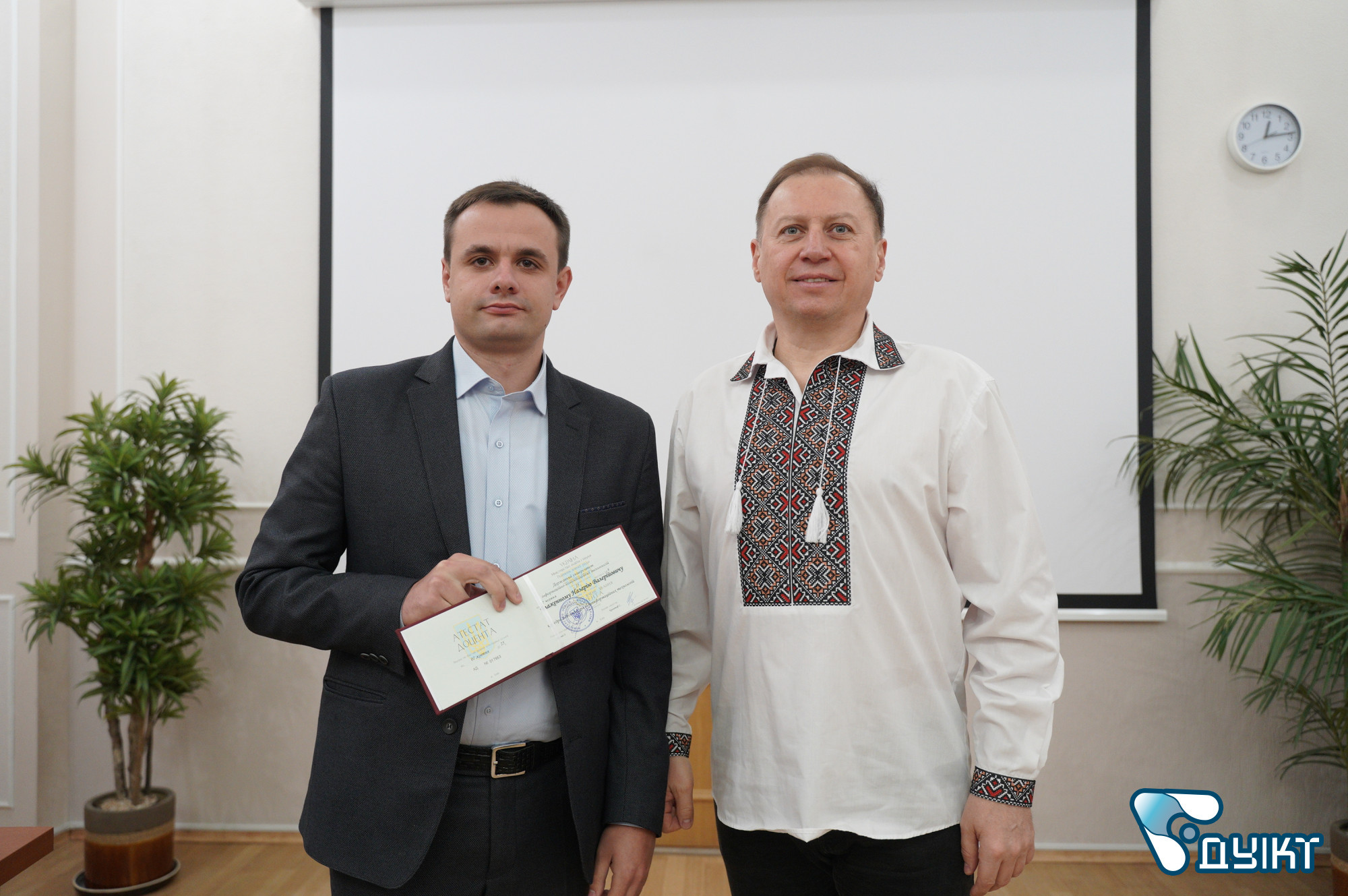 Кафедра Мобільних та відеоінформаційних технологій Навчально-наукового інституту телекомунікацій ДУІКТ щиро вітає Назарія Блаженного, доктора флософії, доцента кафедри, з отриманням вченого звання доцента!