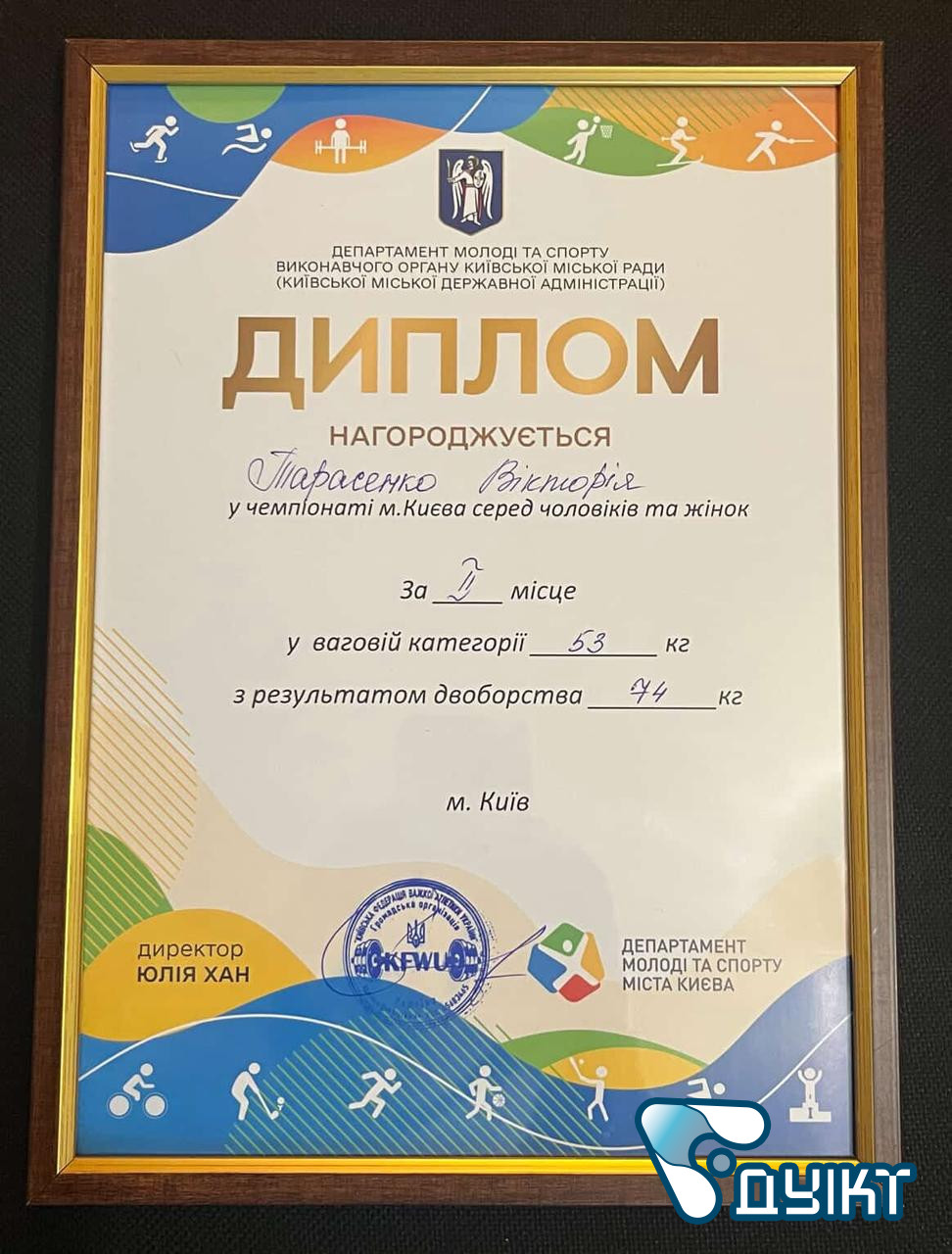 Студентка ДУІКТ Вікторія Тарасенко виборола срібну медаль на чемпіонаті з важкої атлетики