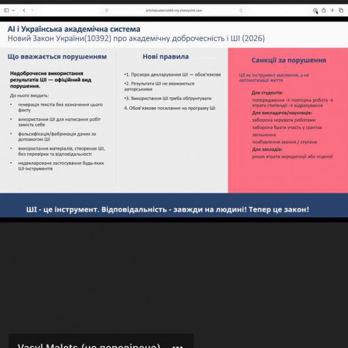 Особливу увагу було приділено питанням академічної доброчесності, коректному використанню інструментів ШІ в дослідницькій діяльності та підвищенню якості наукових матеріалів.