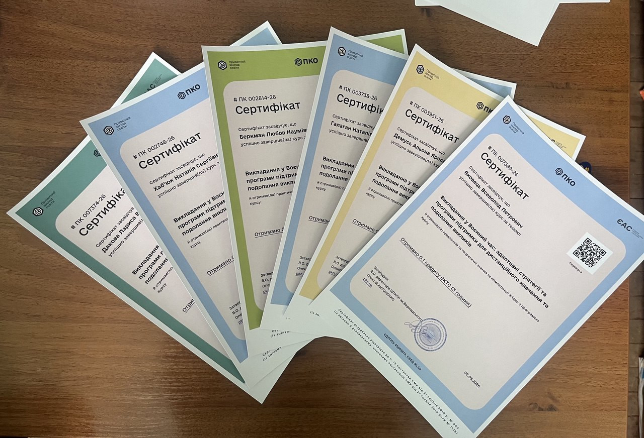 успішно завершили курс «Викладання у воєнний час: адаптивні стратегії та програми підтримки для дистанційного навчання та подолання викликів».