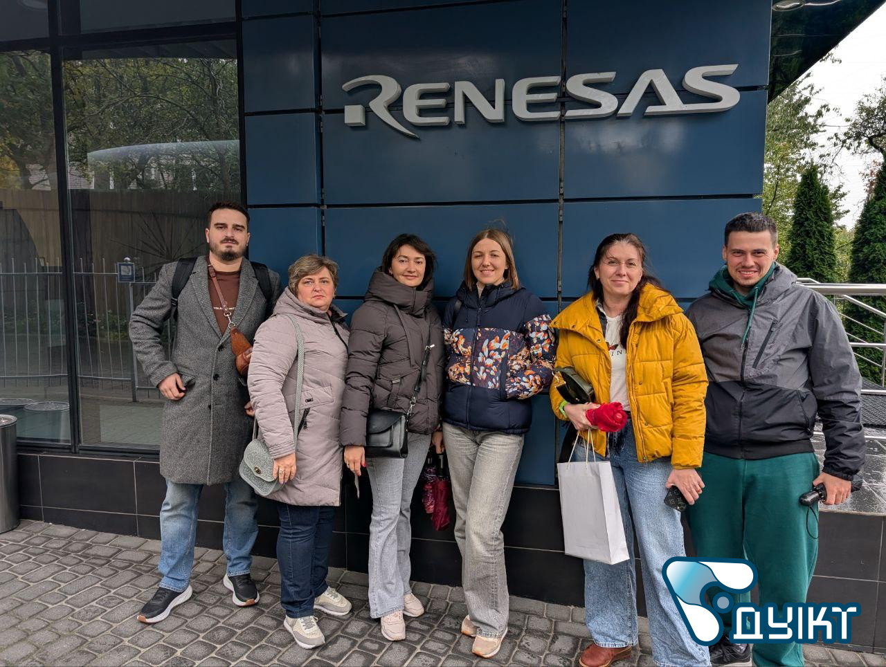Команда Навчально-наукового інституту Інформаційних технологій ДУІКТ в п’ятницю, 10 жовтня 2025 року відвідала офіс компанії Ренесас Дизайн Україна у місті Львів, що є частиною всесвітньо відомої японської корпорації Renesas Electronics Corporation — одного з лідерів у розробці та виробництві напівпровідників.