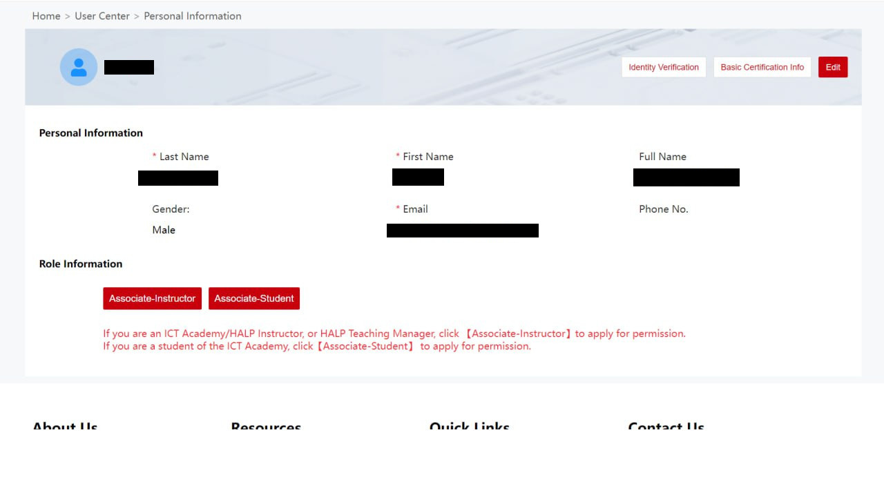 У user center виберіть Personal information та перевірте наявність інформації у “Role information”