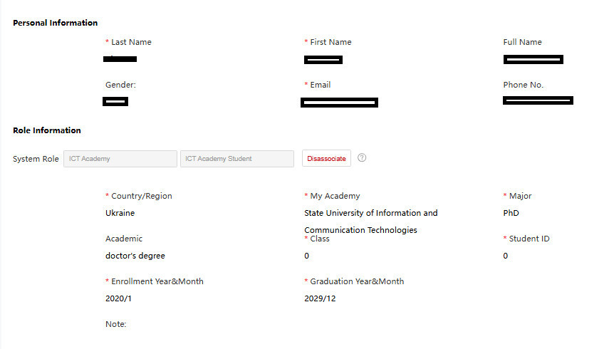 У новому вікні заповніть інформацію та у розділі My Academy оберіть State University of Information and Communication Technologies.