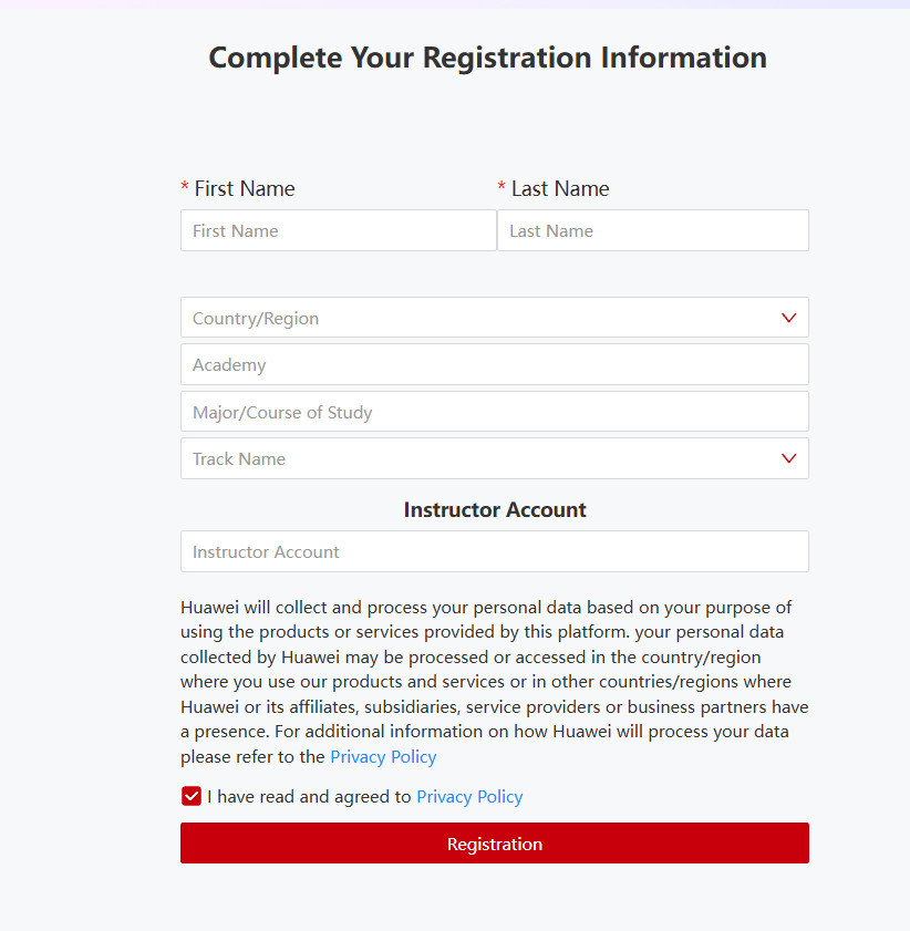 Перейти по посиланню https://e.huawei.com/en/talent/ict-academy/#/become-ict-student та натисніть на посилання під пунктом “Create a Huawei Account”