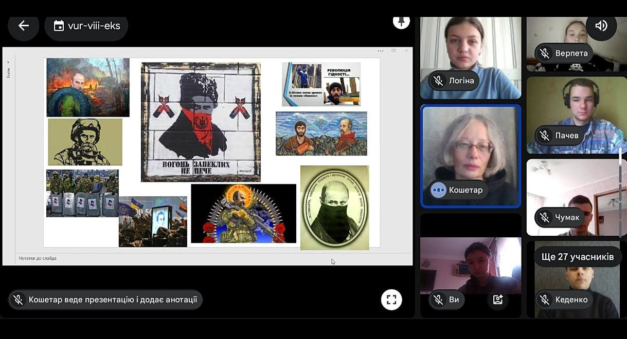 Підсумовуючи почуте, студенти відмітили важливість проєкту «Шевченко-рок та неофолк», зокрема кавер-версії пісні «Тополя» (сл. Т.Г.Шевченко). Зазначену пісню  відомий гурт «Хочу ще!» присвятив героям України, які загинули в боротьбі з російськими окупантами.  Логічним продовженням стали доповіді, присвячені найцікавішим художнім образам Т.Г.Шевченка.