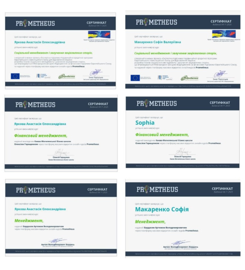 Отримані сертифікати - це не лише свідчення активності студентів, а й важливий крок до формування конкурентоспроможного фахівця. Такі ініціативи показують, що студенти ДУІКТ готові брати відповідальність за власне професійне зростання й упевнено рухаються до майбутньої кар’єри у сфері управління.
