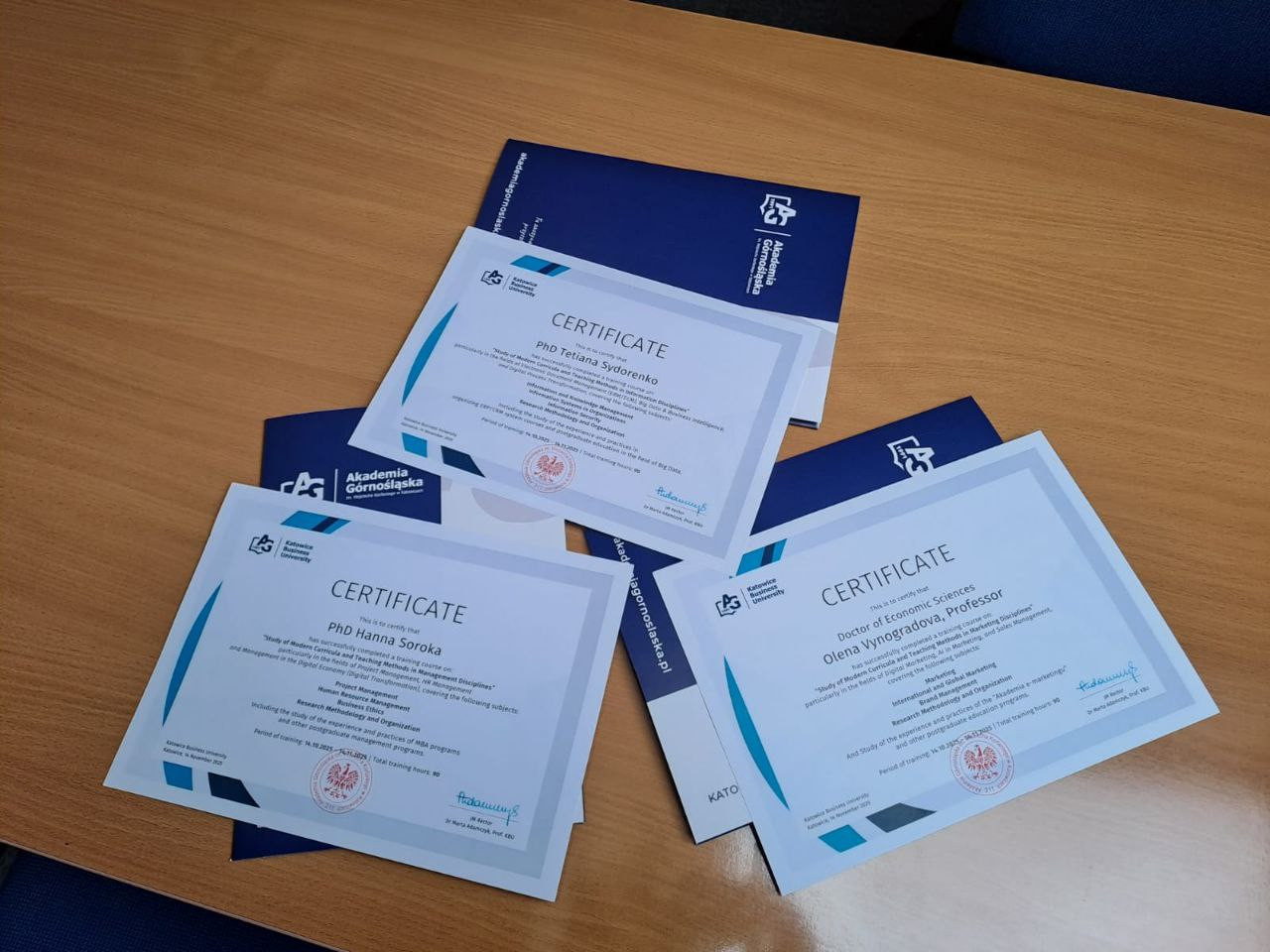 Отриманий Анною Сорокою сертифікат про проходження стажування в Akademia Górnośląska im. Wojciecha Korfantego загальною тривалістю 90 годин, став черговим підтвердженням ефективної міжкультурної взаємодії кафедри менеджменту.