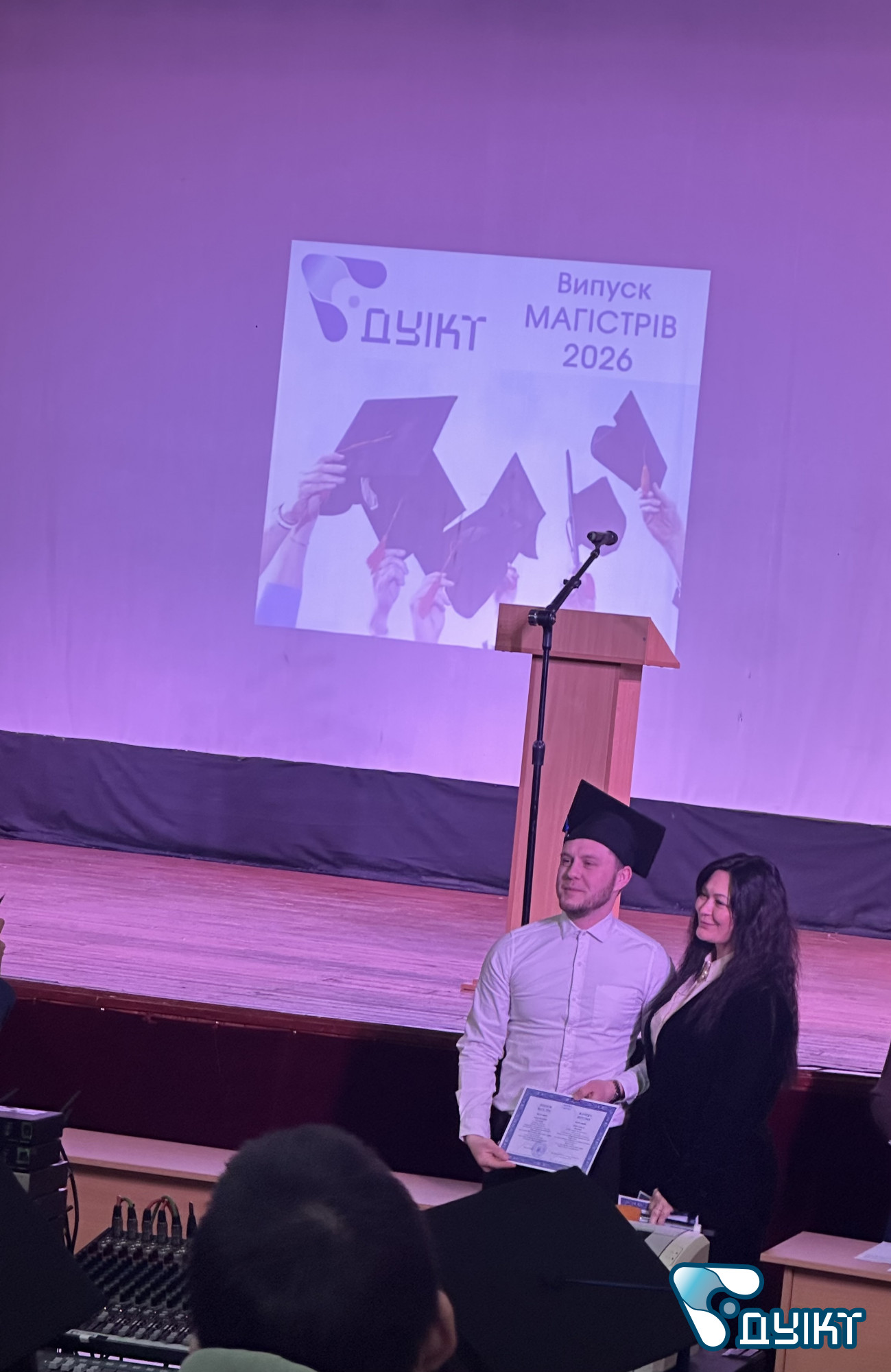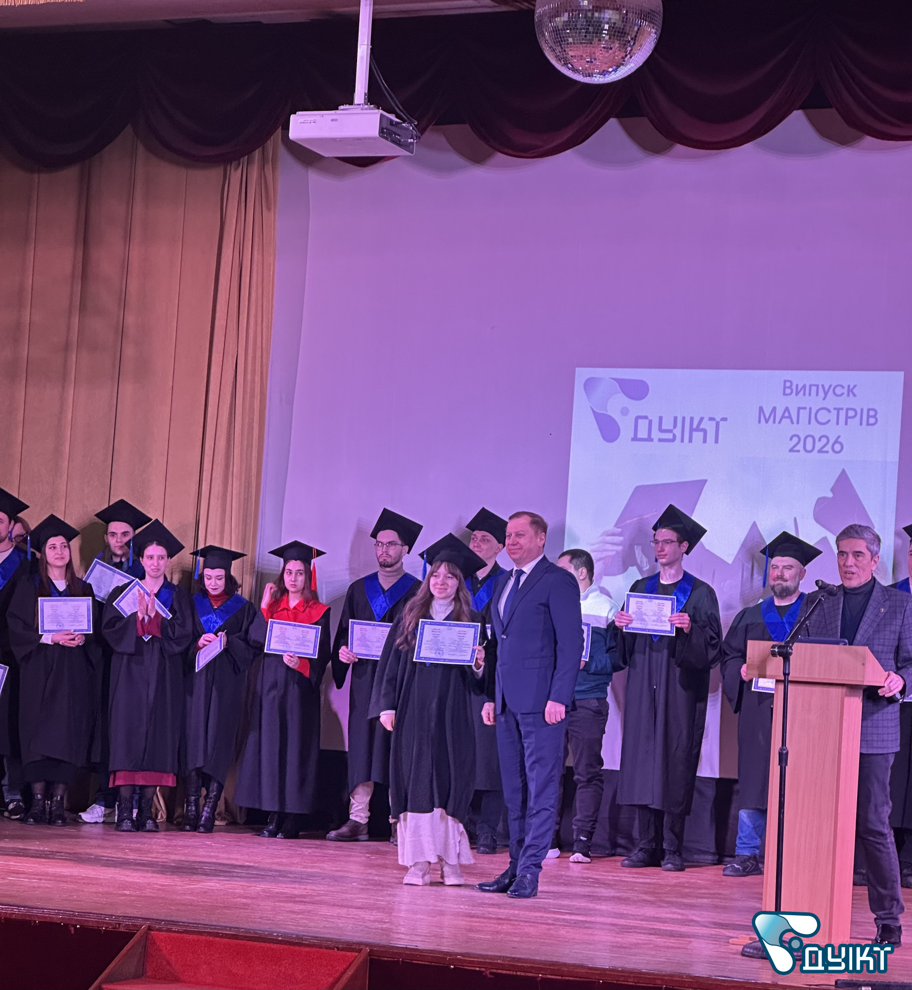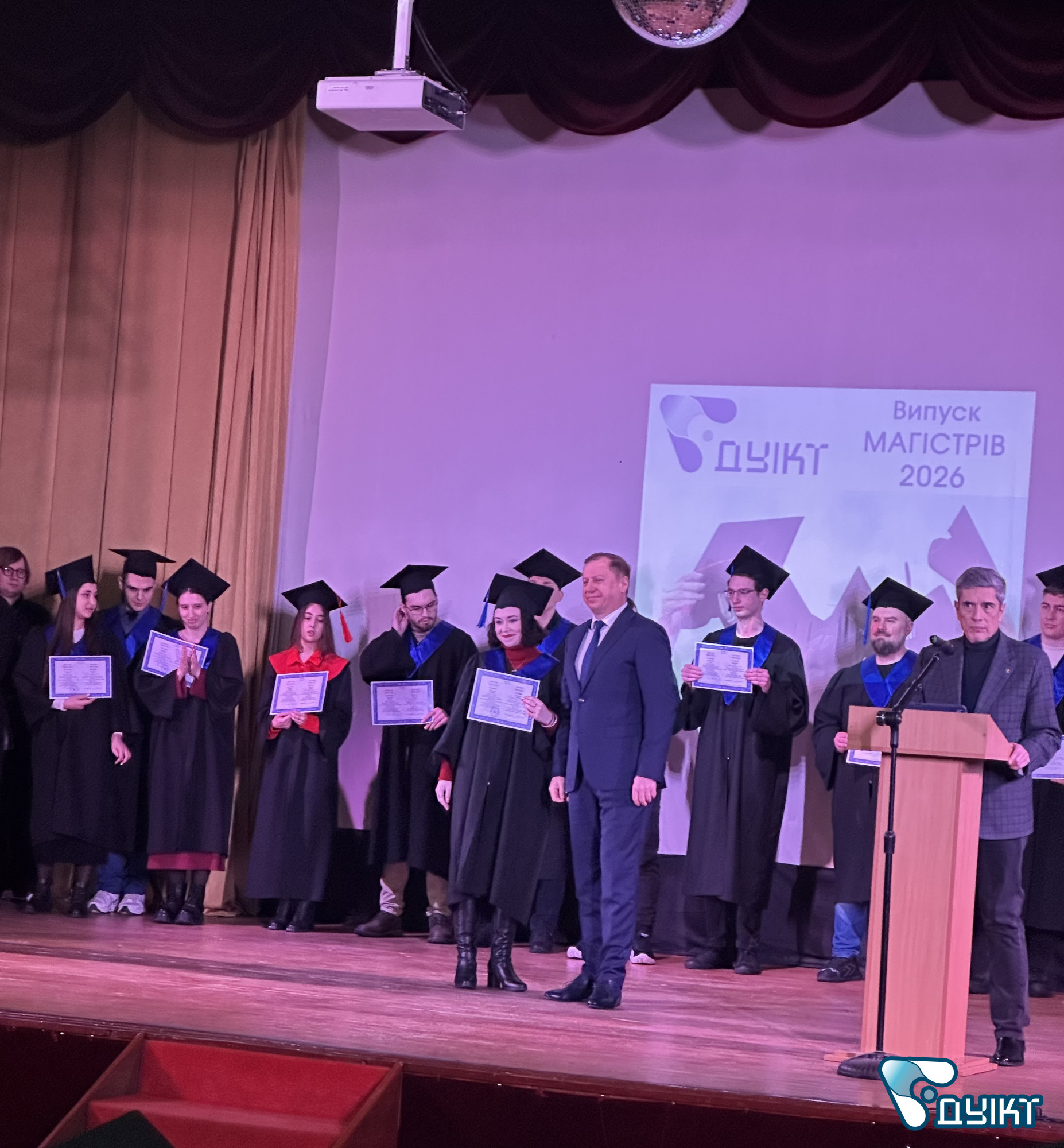 Урочистий випуск відбувся в актовій залі університету. Теплі вітальні настановчі слова пролунали від ректора ДУІКТ Володимира Шульги s директора Інституту менеджменту та підприємництва Світлани Петровської. Зі словами привітання виступили провідні компанії-партнери університету.