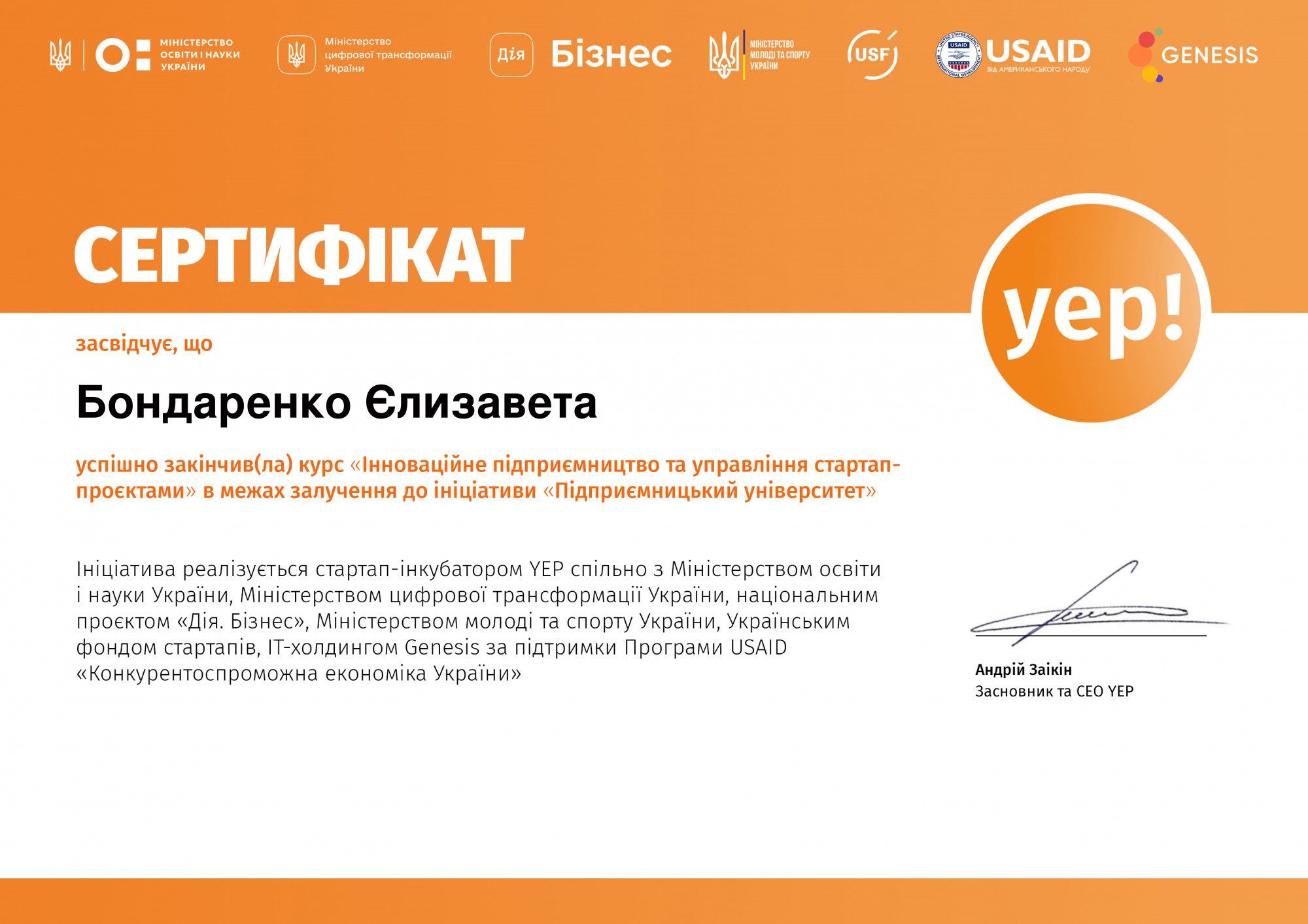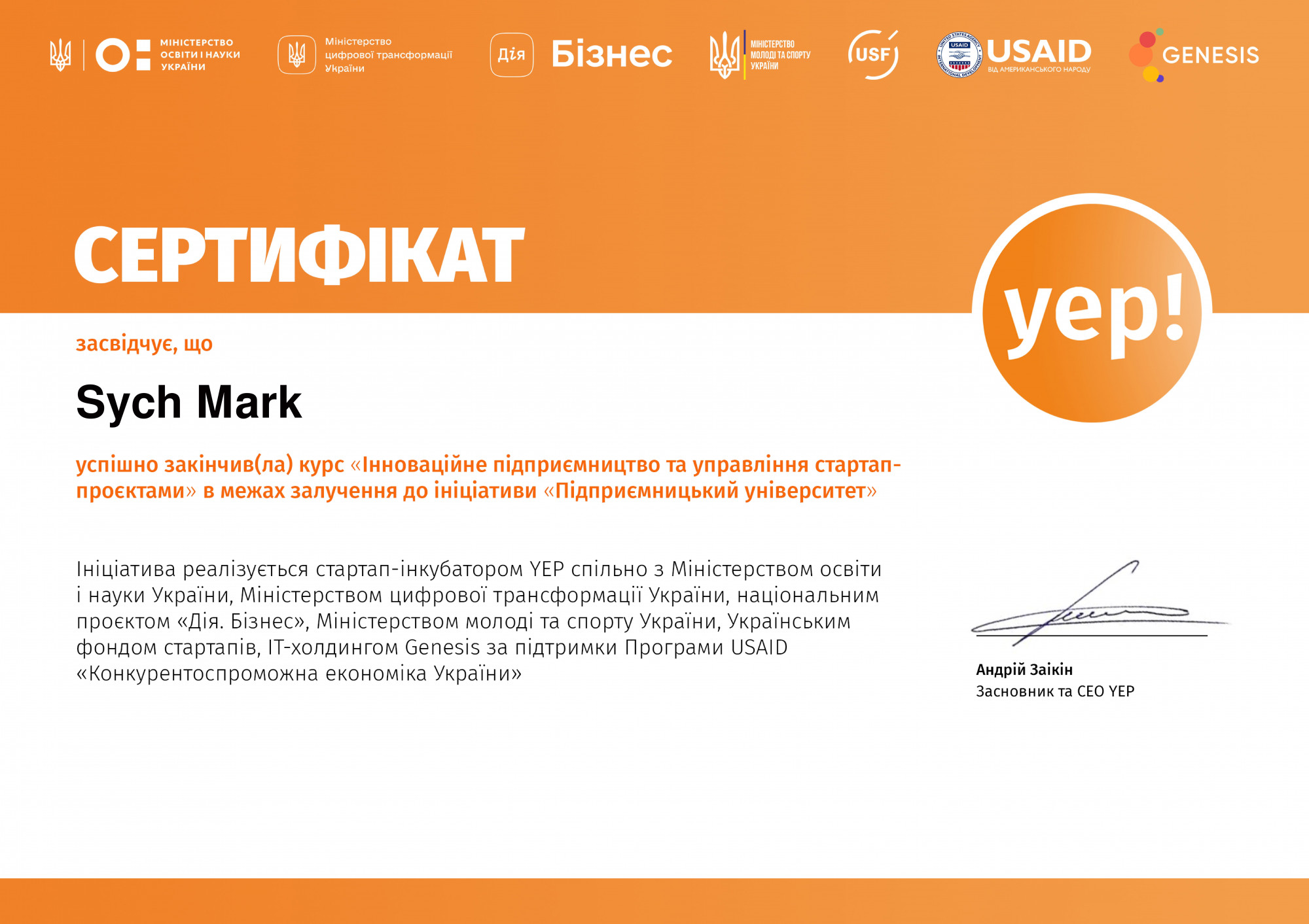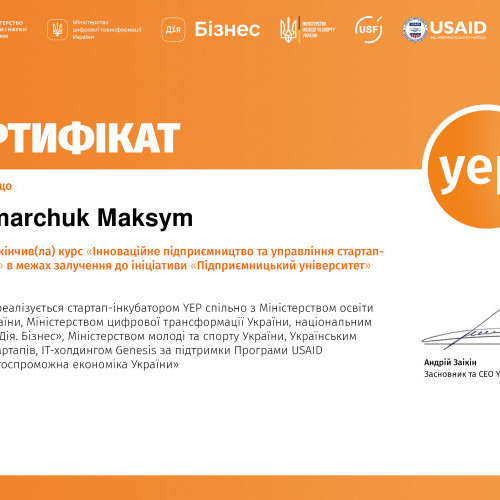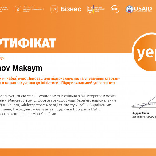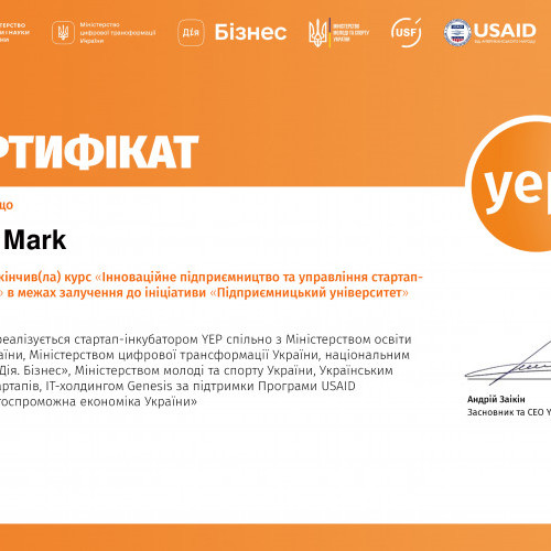Отримані сертифікати YEP підтверджують формування в студентів компетентностей, які сприяють подальшому професійному розвитку, участі у стартап-проєктах і створенні власних підприємницьких ініціатив.