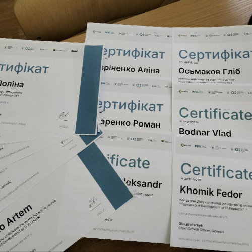 У межах вивчення вибіркової дисципліни «Інноваційне підприємництво та управління стартап-проєктами» студенти 2 курсу кафедри Технологій цифрового розвитку успішно отримали іменні сертифікати ІТ-компанії Genesis, які підтверджують набуті практичні навички зі створення та розвитку ІТ-продуктів після проходження оцінювання на інтерактивній платформі Strum.