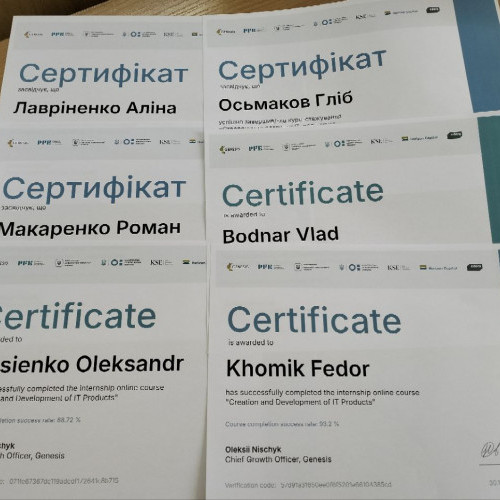Отримані сертифікати Genesis — це офіційне підтвердження практичних знань здобувачів у сфері продуктової розробки, аналітики, дизайну й підприємництва, а також конкурентна перевага під час працевлаштування.