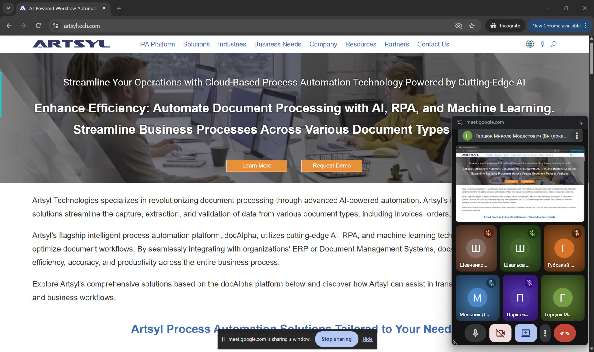 Також було проведено екскурс напрямами діяльності компанії Artsyl Technology Inc., зокрема розробкою рішень у сфері автоматизації бізнес-процесів, цифрової трансформації та інтелектуальної обробки даних.