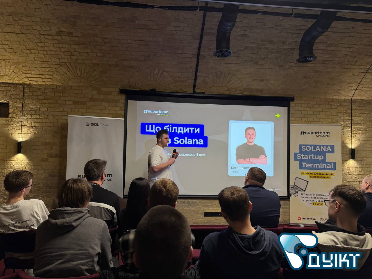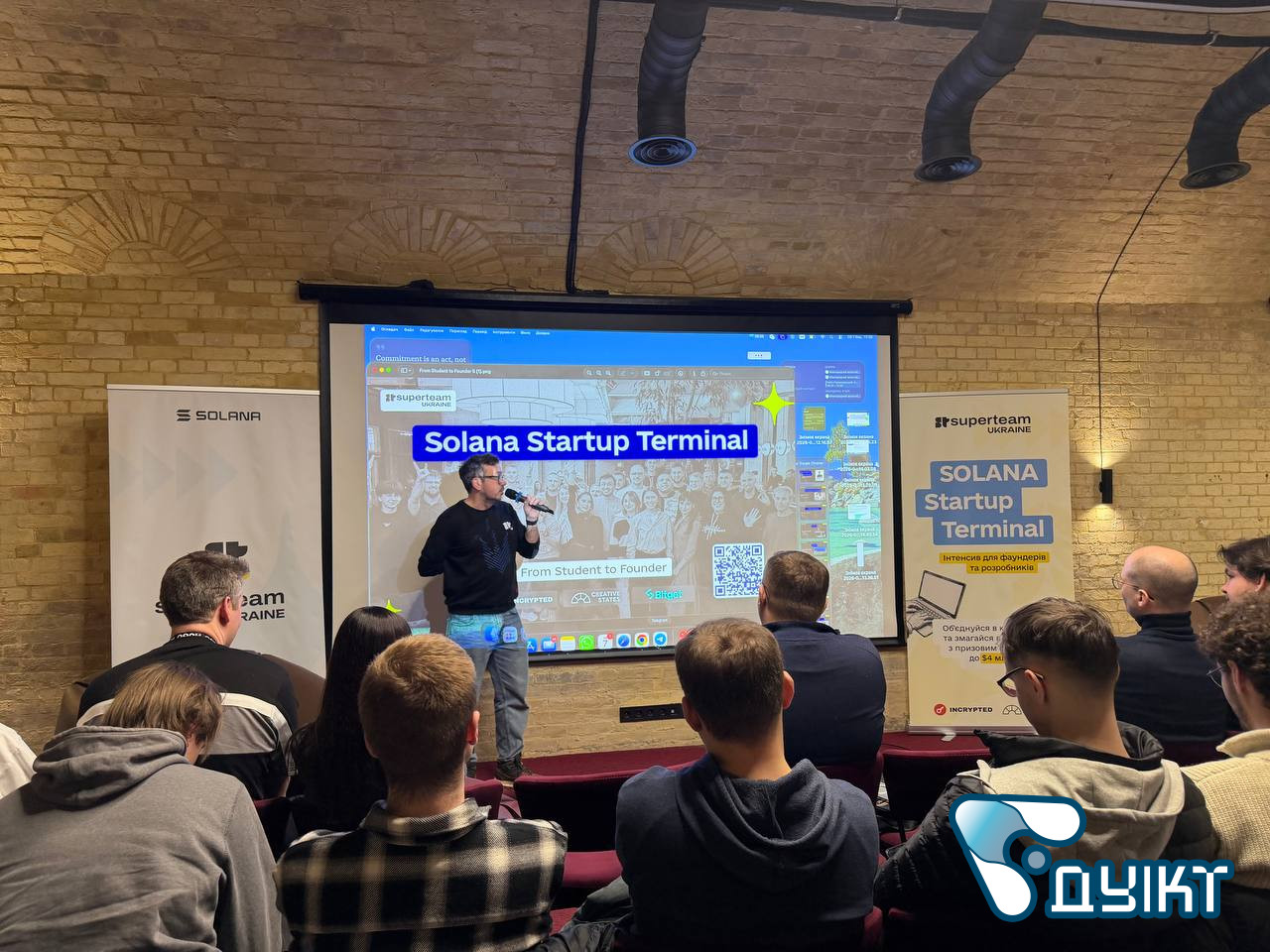 Під час заходу учасники ознайомилися з сучасними тенденціями створення технологічних стартапів та шляхом розвитку від студента до засновника власного проєкту. Значну увагу було приділено можливостям побудови цифрових продуктів на базі екосистеми Solana, яка активно використовується для створення децентралізованих застосунків, Web3-сервісів та інноваційних цифрових платформ.