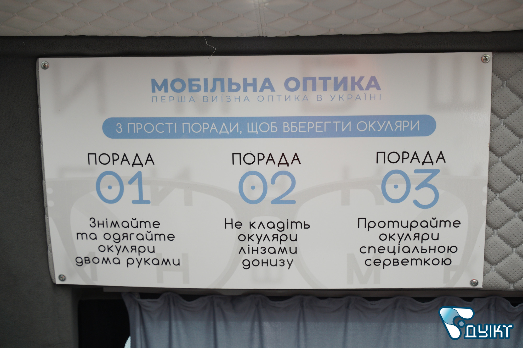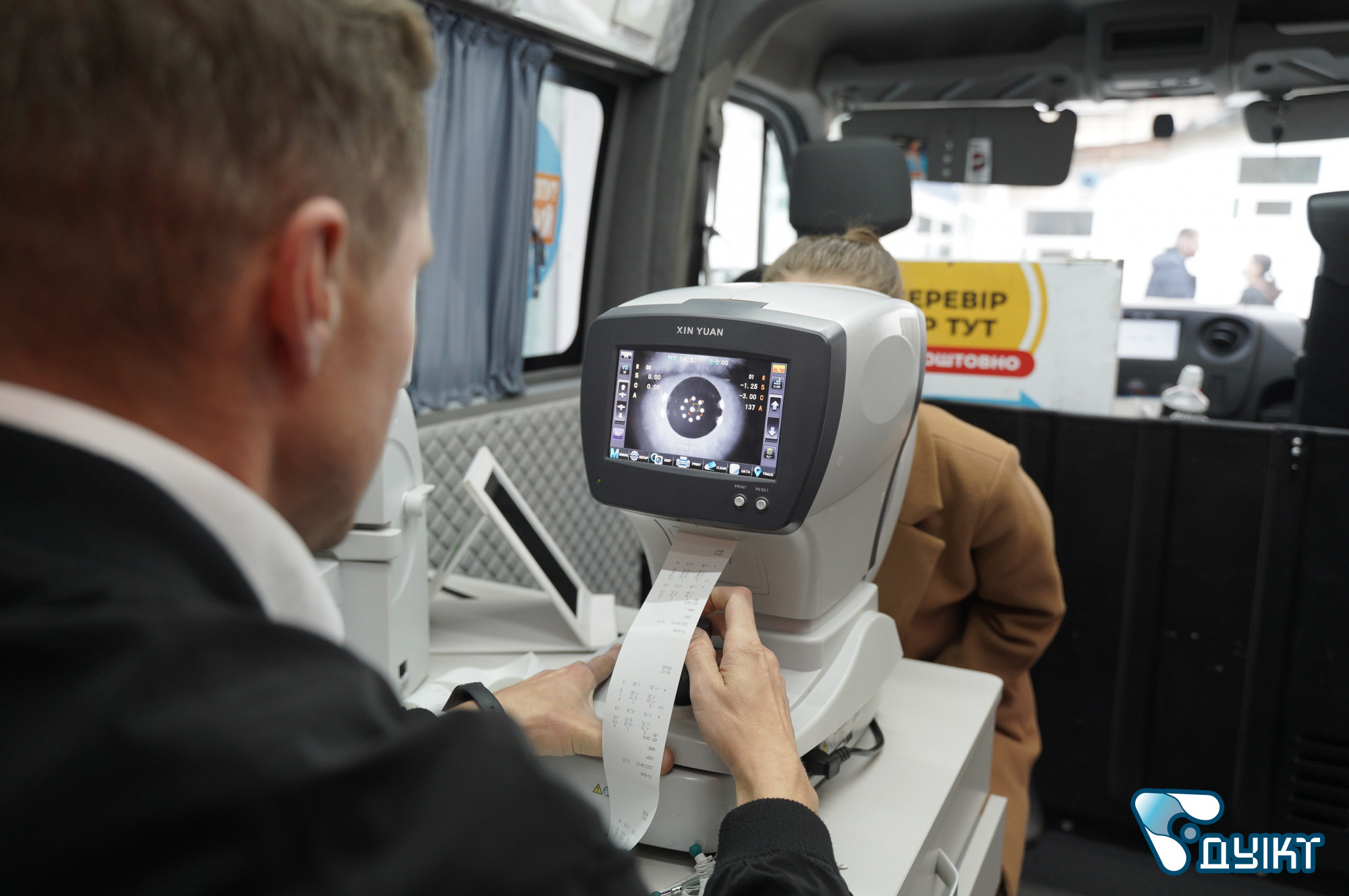 На території університету працювала мобільна оптика — спеціально обладнаний автомобіль із сучасною апаратурою для діагностики гостроти зору. Обстеження проводив фахівець оптометрист Сергій Матковський, який здійснював перевірку зору, комп’ютерну діагностику та консультував відвідувачів.