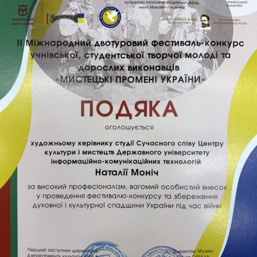 Студенти ДУІКТ — серед переможців II Міжнародного фестивалю-конкурсу «Мистецькі промені України»