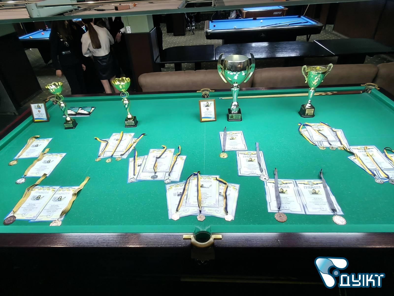 У командному заліку Чемпіонату України серед науково-педагогічних працівників ЗВО зі спортивного більярду „Пул-вісімка” перемогла команда Національного університету «Полтавська політехніка імені Юрія Кондратюка» (Коваленко Анастасія, Облак Олександр, Гирман Богдан) - Президент – Онищенко Володимир Олександрович, друге місце посіла команда Київського національного університету будівництва і архітектури (Пасічник Павло, Єрьомін Андрій, Приймак Олександр) - ректор – Дніпров Олексій Сергійович і третє місце - команда Державного університету інформаційно-комунікаційних технологій Іванченко Ігор, Вишнівський Віктор, ректор – Шульга Володимир Петрович.