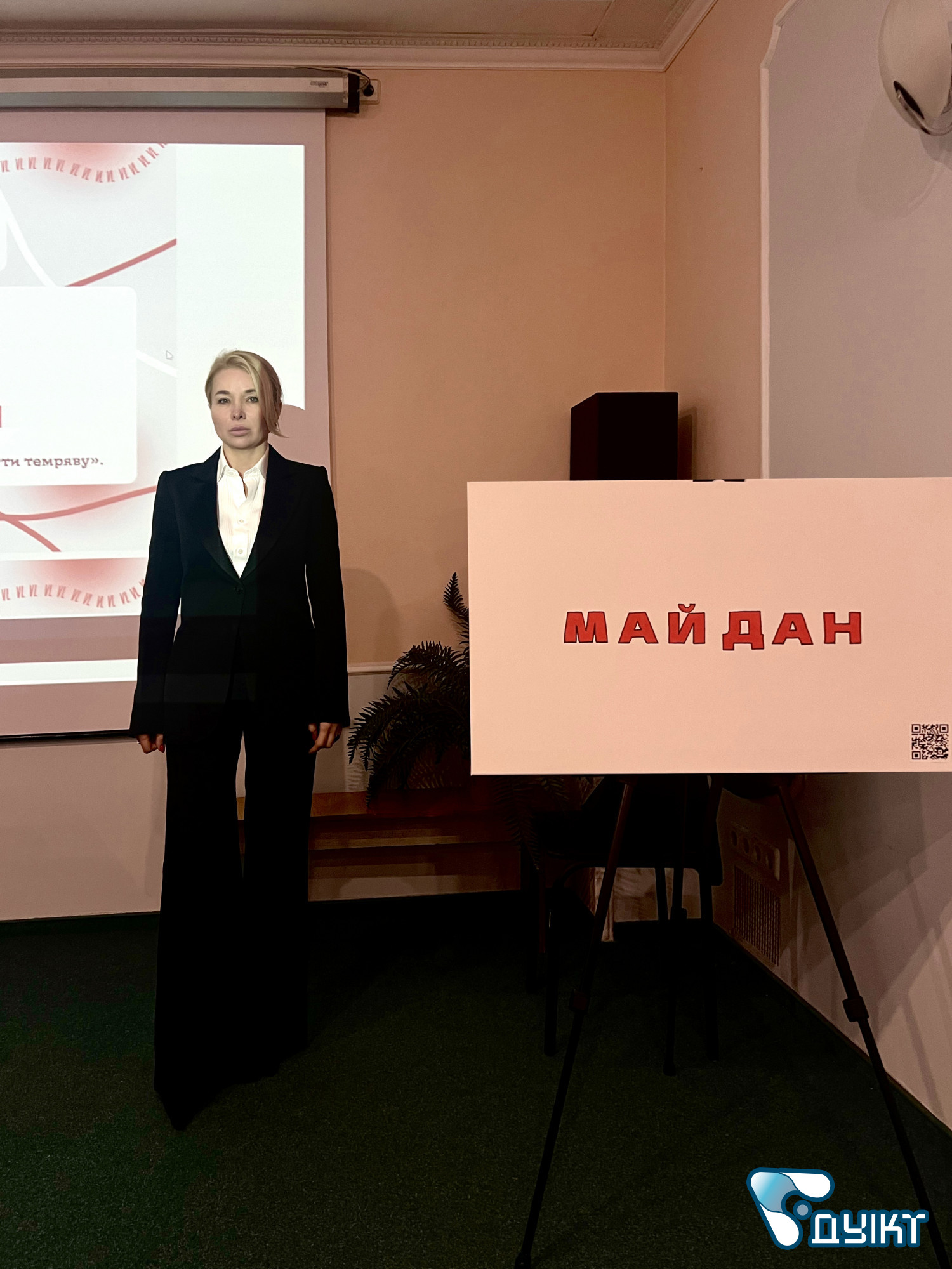 Доцент кафедри Документознавства та інформаційної діяльності, президент громадської організації «Святиня-Берегиня» Вікторія Ліснича розповіла здобувачам вищої освіти про події, які стали ключовими для сучасної української історії. Вона нагадала, що 21 листопада в Україні відзначають День Гідності та Свободи. Ця дата пов'язує між собою дві революції, які відбулися в Україні з інтервалом у 9 років: Помаранчеву революцію 2004 року та Революцію Гідності 2013 року.