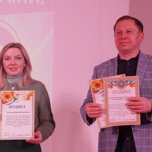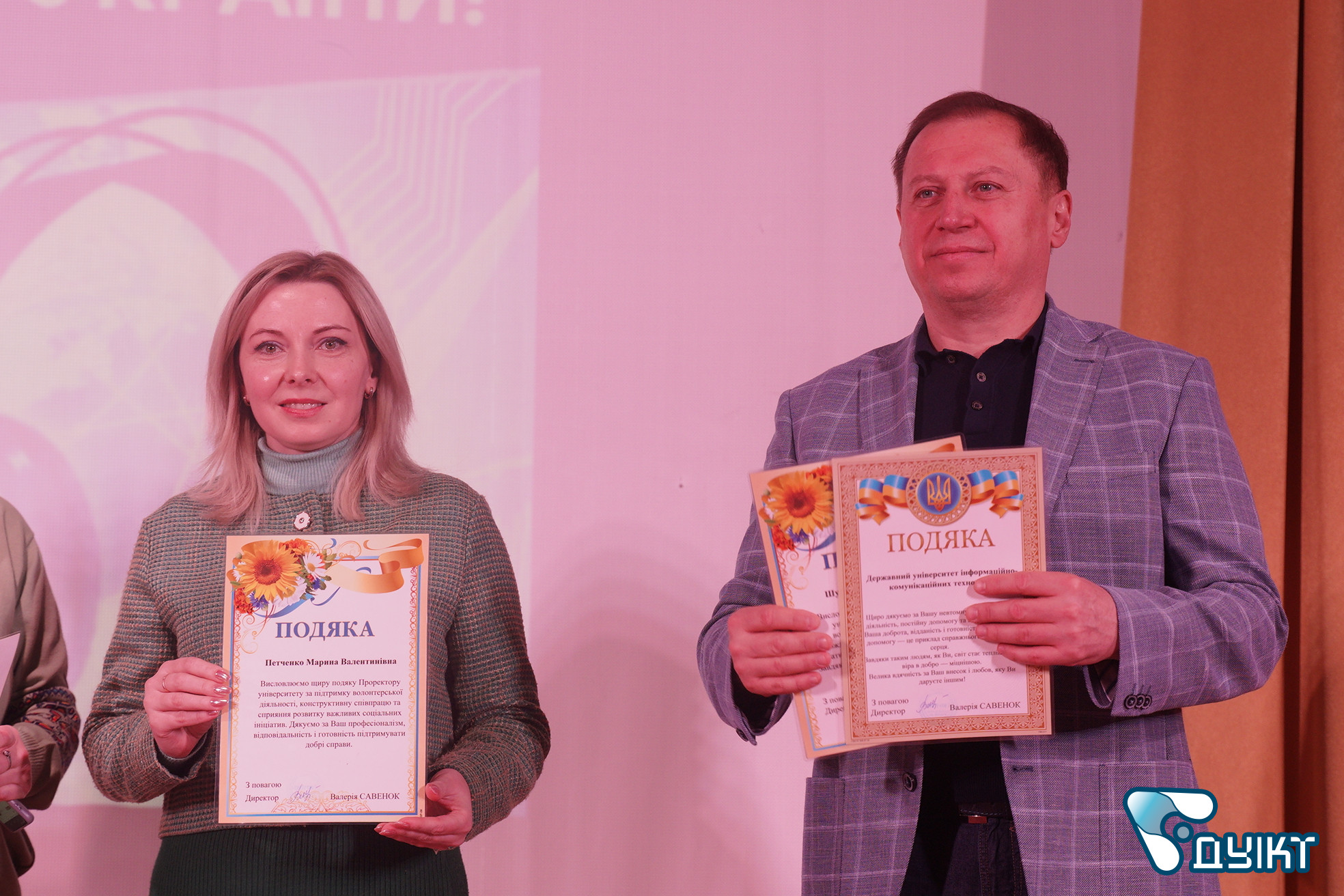 Після вітання розпочалася церемонія нагородження почесними відзнаками університету. Подяками та грамотами були відзначені працівники ДУІКТ, партнери й гості — за професіоналізм, вагомий внесок у розвиток університету, співпрацю та підтримку студентської молоді.