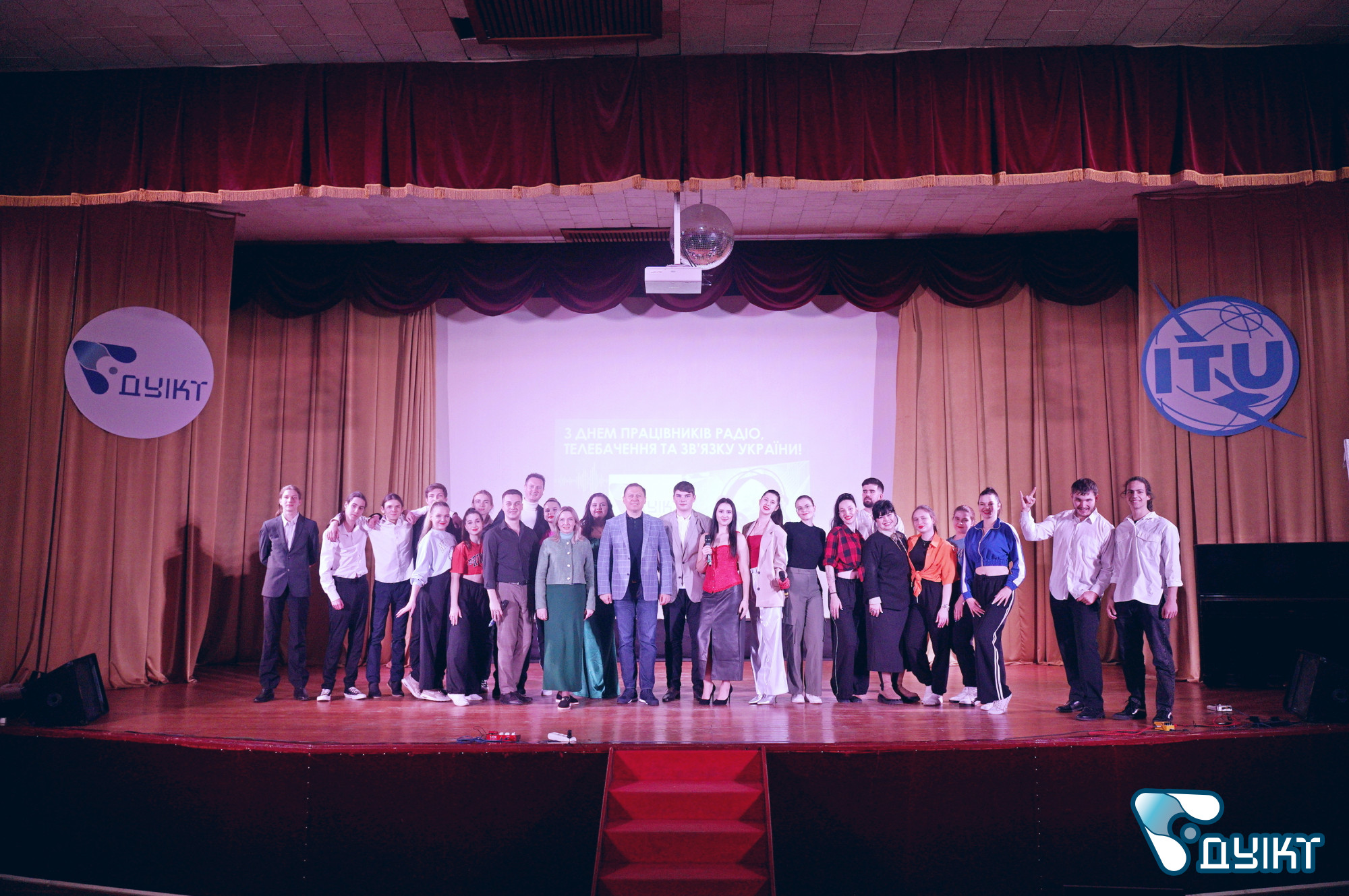 У Державному університеті інформаційно-комунікаційних технологій відбулося яскраве свято — концерт «ДУІКТ на зв’язку», присвячений Дню працівників радіо, телебачення та зв’язку України. У головній залі університету зібралися студенти, викладачі, співробітники та гості, щоб разом відзначити професійне свято тих, хто формує інформаційний простір країни та забезпечує її цифрову стійкість.