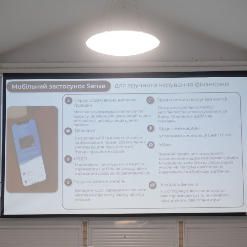 Представники Sense Bank детально розповіли студентам про можливості нової карткової програми, що включає розширений функціонал, зручні цифрові сервіси та особливі умови, адаптовані до потреб молоді. Окрім цього, студенти дізналися про: