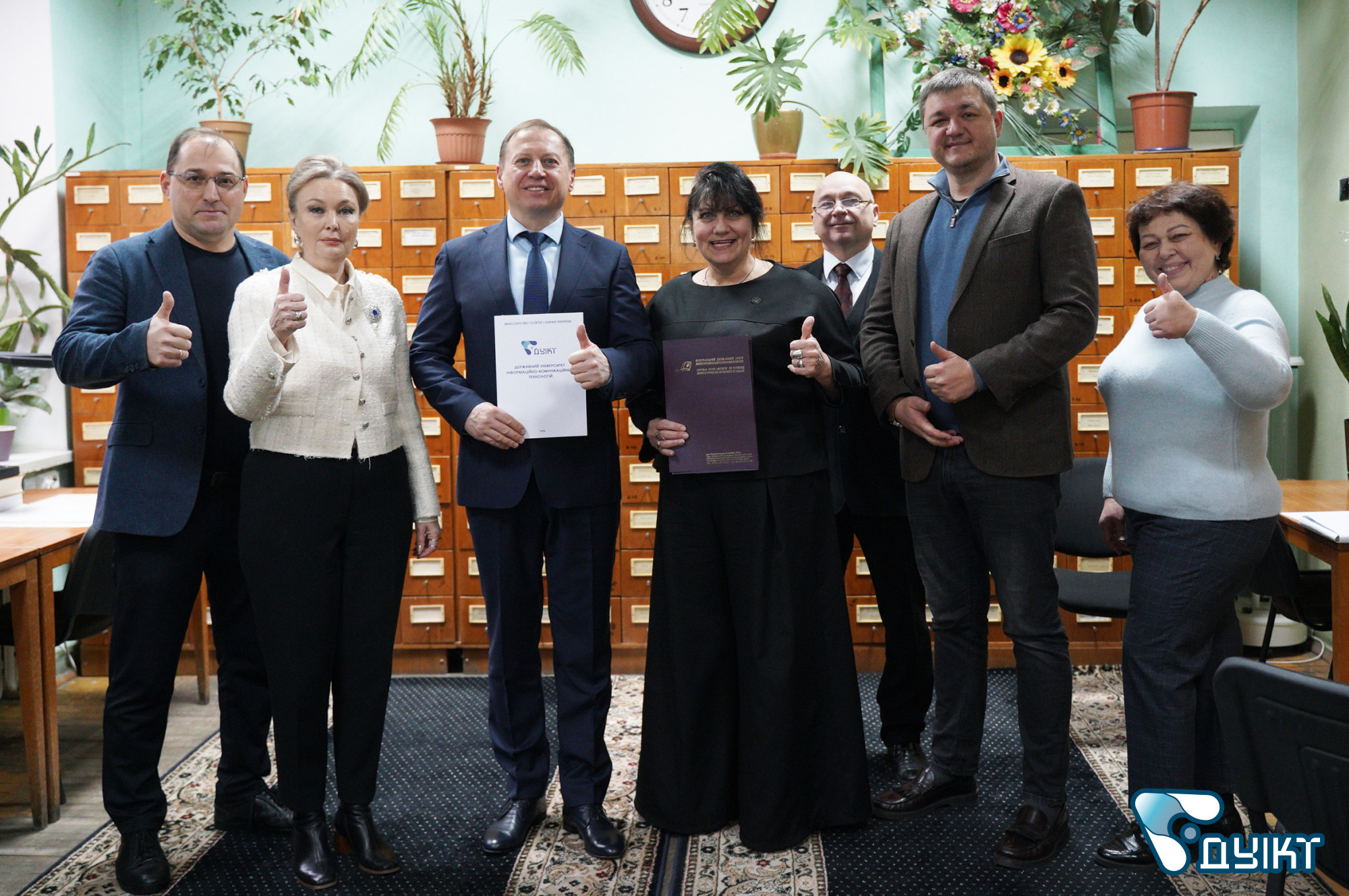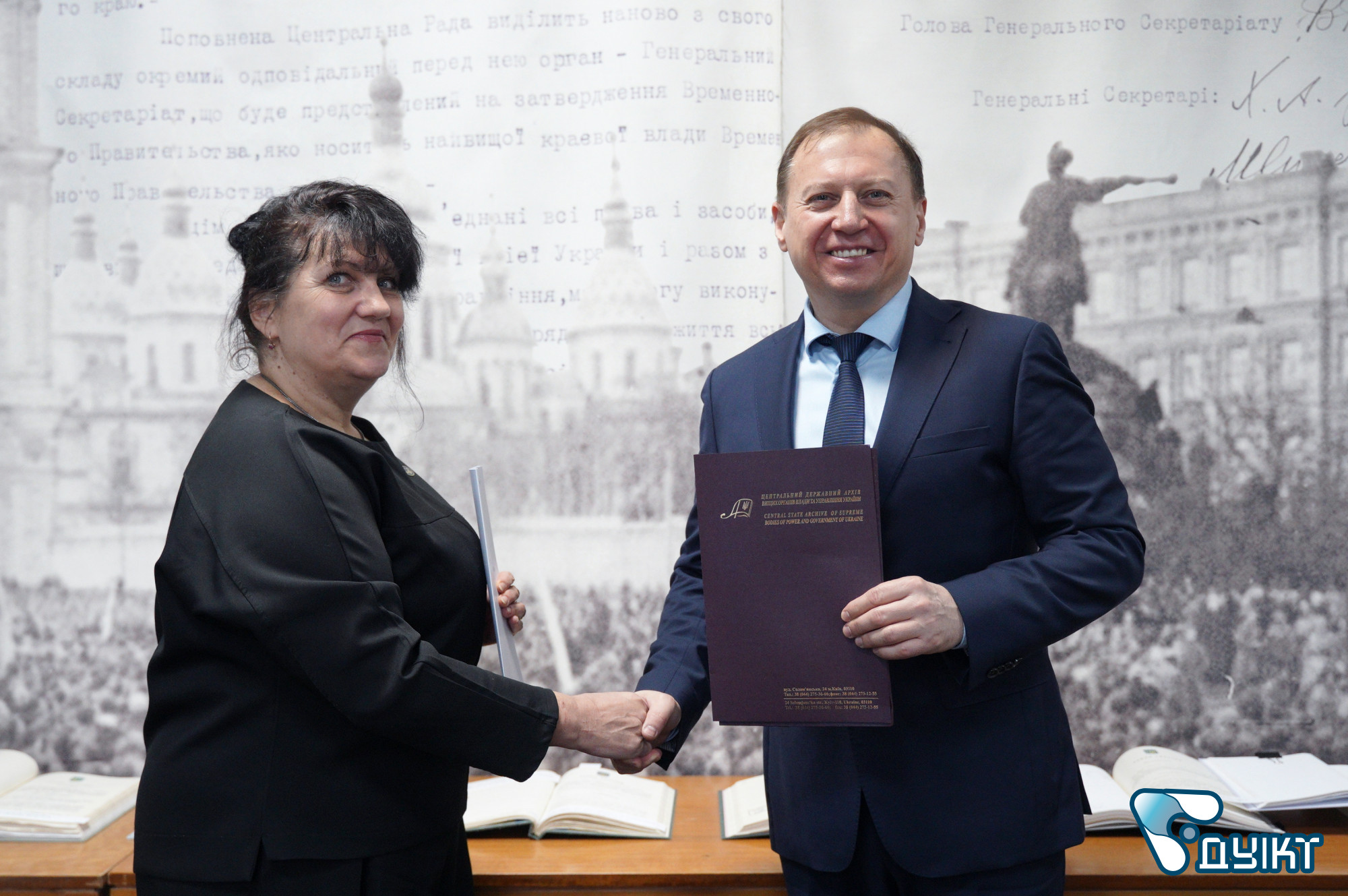 Зустріч розпочалася з обговорення ключових напрямів співпраці та перспектив розвитку партнерства. Ректор ДУІКТ Володимир Шульга та директор ЦДАВО України Лариса Левченко підписали угоду, яка передбачає широке коло спільних дій у галузі інформаційних технологій, архівної справи та документознавства.