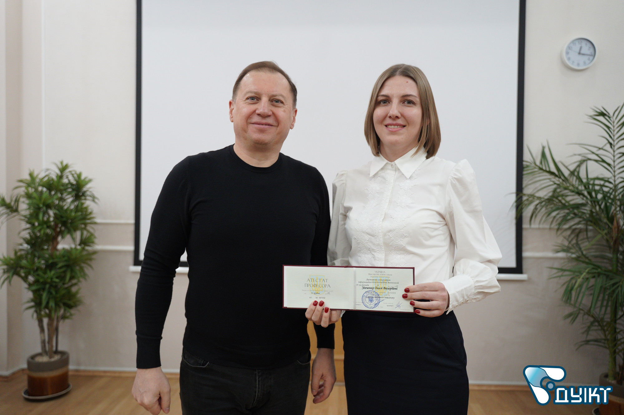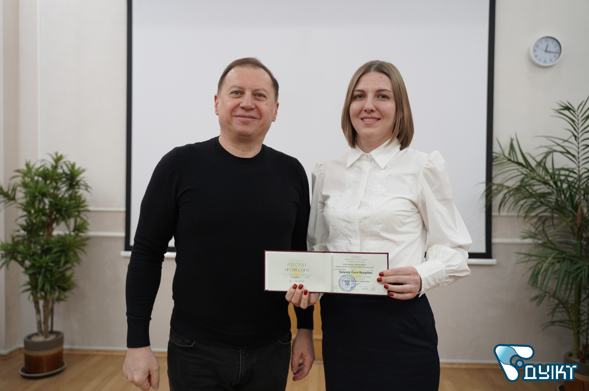 Розпочалося засідання Вченої ради університету із вручення відзнак працівникам університету, зокрема вручено атестат професора по кафедрі штучного інтелекту ЗІНЧЕНКО Ользі Валеріївні – завідувачу кафедри штучного інтелекту Навчально-наукового інституту інформаційних технологій, доктору технічних наук, професору; та атестат доцента по кафедрі штучного інтелекту ШАНТИРЮ Антону Сергійовичу – доценту кафедри штучного інтелекту Навчально-наукового інституту інформаційних технологій, кандидату технічних наук, доценту.