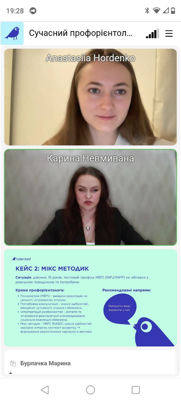 Вебінар «Сучасний профорієнтолог» став прикладом того, як сучасна профорієнтація допомагає поєднати освітні інновації, гуманітарні знання та технології, відкриваючи нові можливості для студентів і майбутніх фахівців у контексті викликів 2030 року.