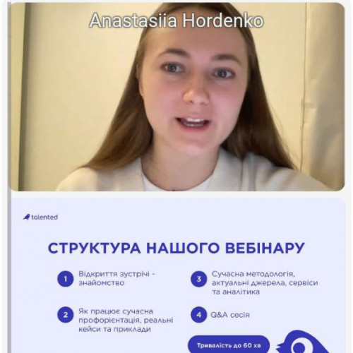 29 січня 2026 р. завідувач кафедри Англійської мови та комп’ютерних лінгвотехнологій Навчально-наукового інституту Інформаційних технологій Анна Колісниченко та доценти кафедри Галина Єнчева, Ірина Струк та Світлана Харицька відвідали вебінар «Сучасний профорієнтолог», організований освітньо-профорієнтаційною платформою Talanted.