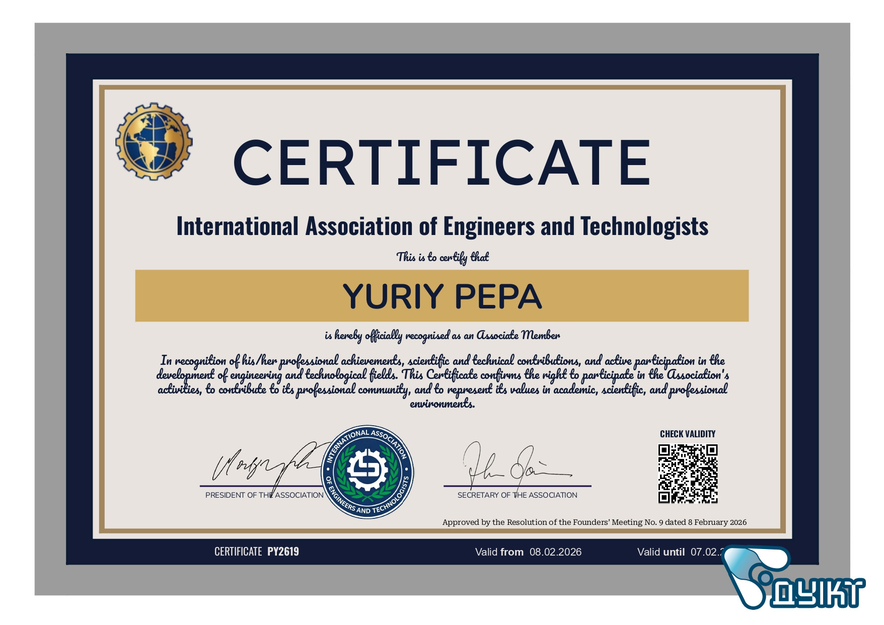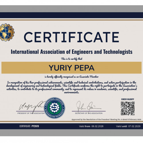 Професора кафедри технічних систем кіберзахисту Юрія Пепу прийнято до Міжнародної асоціації інженерів і технологів