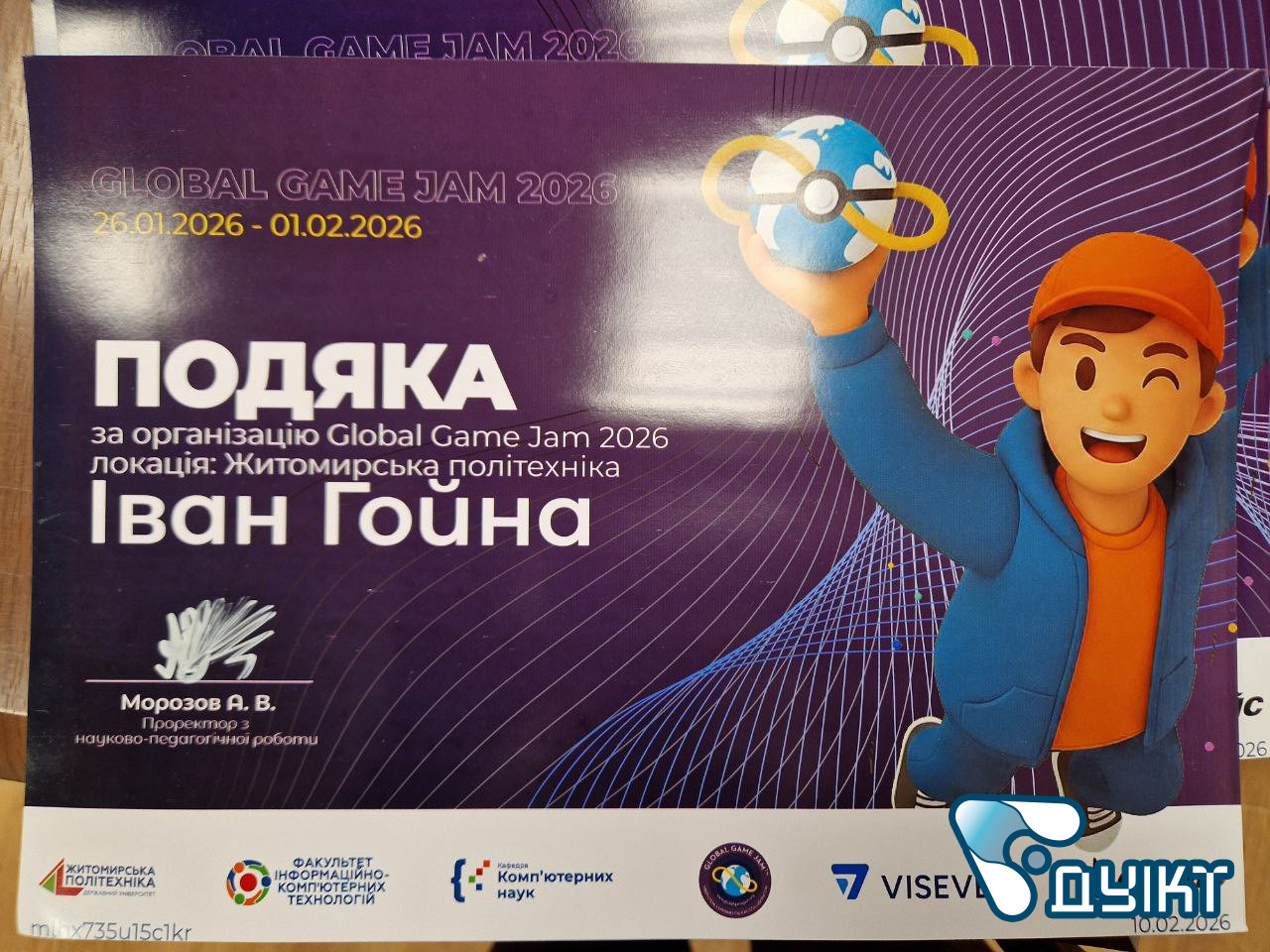 Однією з локацій де проводився Global Game Jam 2026 в Україні, став Державний університет Житомирська Політехніка. До ряду партнерів, які підтримали організацію конкурсу також долучились: компанія Viseven (яка спеціалізується на маркетингових технологіях (MarTech) для фармацевтичної індустрії та медико-біологічних наук), а також організація "Спейс". Серед організаторів заходу був також магістрант ДУІКТ - Іван Гойна.