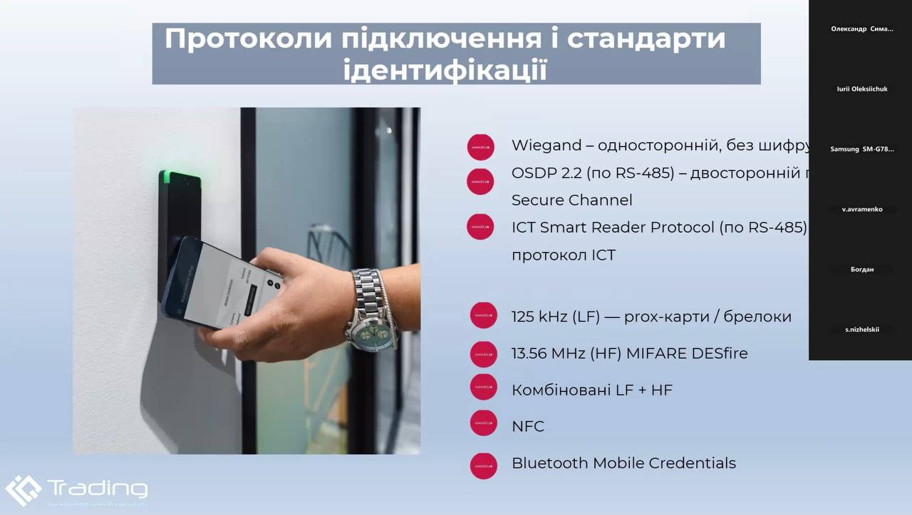 Студенти та викладачі кафедри Мобільних та відеоінформаційних технологій разом з магістрами кафедри Технологій цифрового розвитку активно долучилися до участі у змішаному форматі до вебінару «ICT Protege: комплексний підхід до систем контролю доступу та безпеки» в межах вивчення дисципліни «Інтелектуальні системи відеонагляду», з метою поглиблення фахових знань і практичних компетентностей у сфері сучасних систем безпеки, організований партнером Університету — компанією IQ Trading.