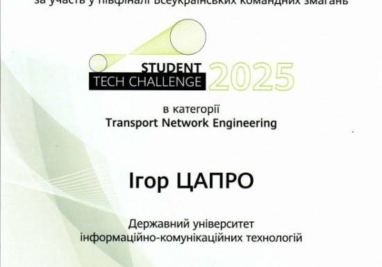 Аспірант кафедри інженерії програмного забезпечення Ігор Цапро взяв участь у півфіналі Всеукраїнських командних змагань Student Tech Challenge 2025, що проходили з 7 жовтня по 14 листопада 2025 року за підтримки компанії Huawei Ukraine та Міністерств..